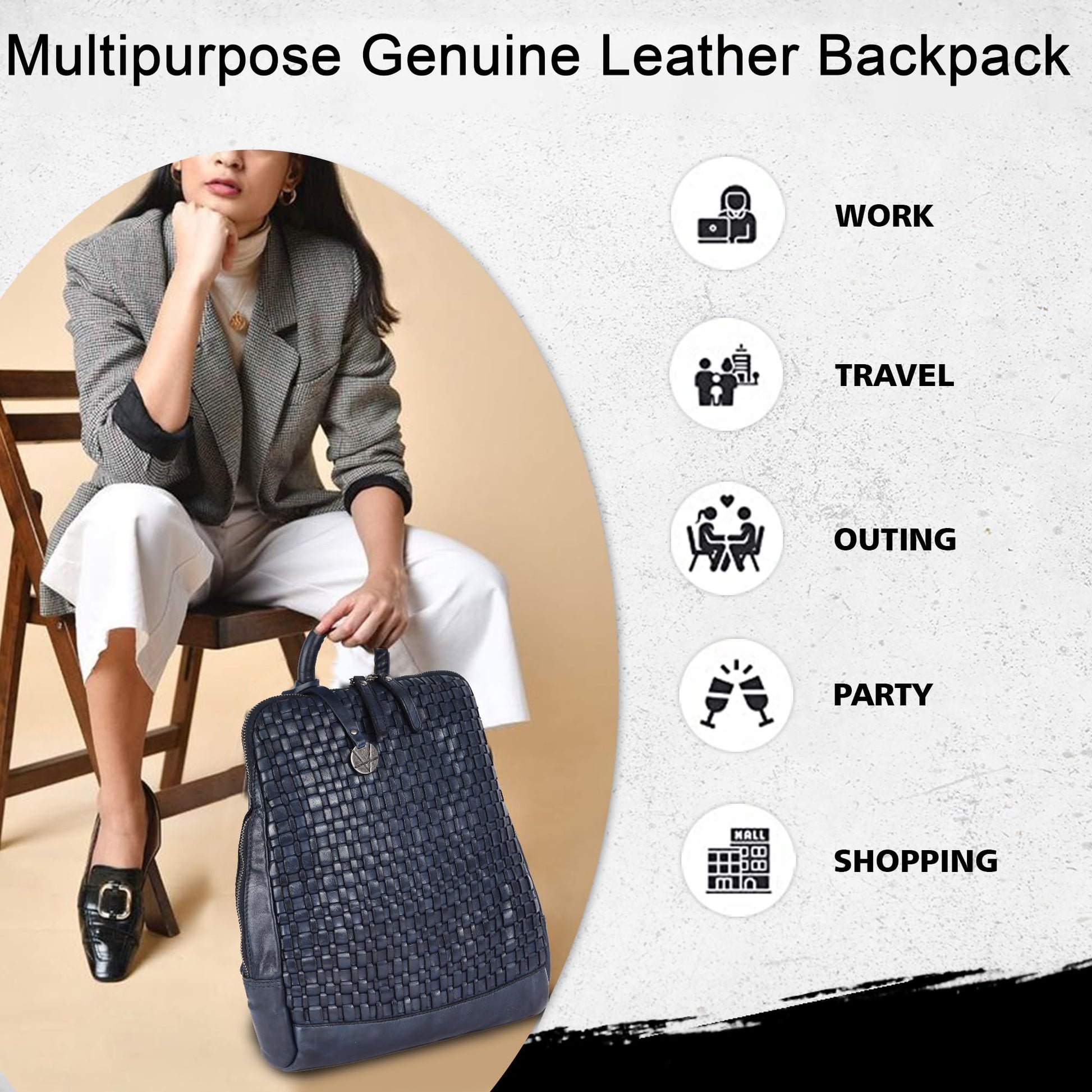 VILENCA HOLLAND 12.5 Inch Navy Blue Genuine Leather Backpack for Men,Casual Mini Backpack for Women Office Bag with Adjustable Shoulder Strap