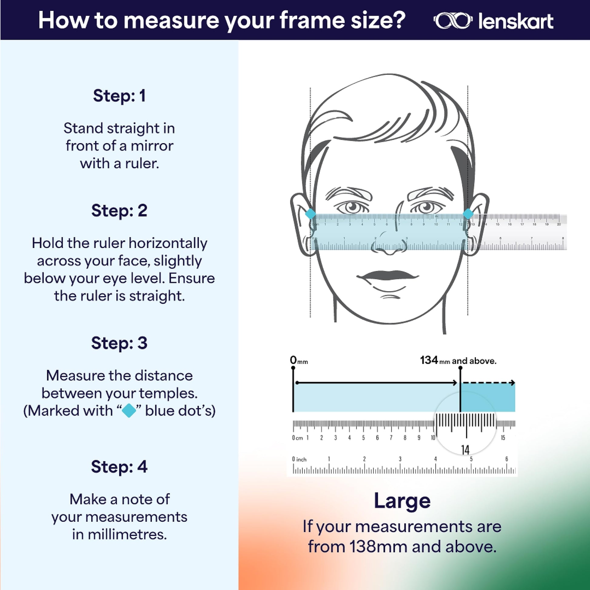 - Frame Dimension:- Size: Large | Frame width: 143 mm | Frame Height: 40 mm | Frame Dimensions: (50-23-153) mm