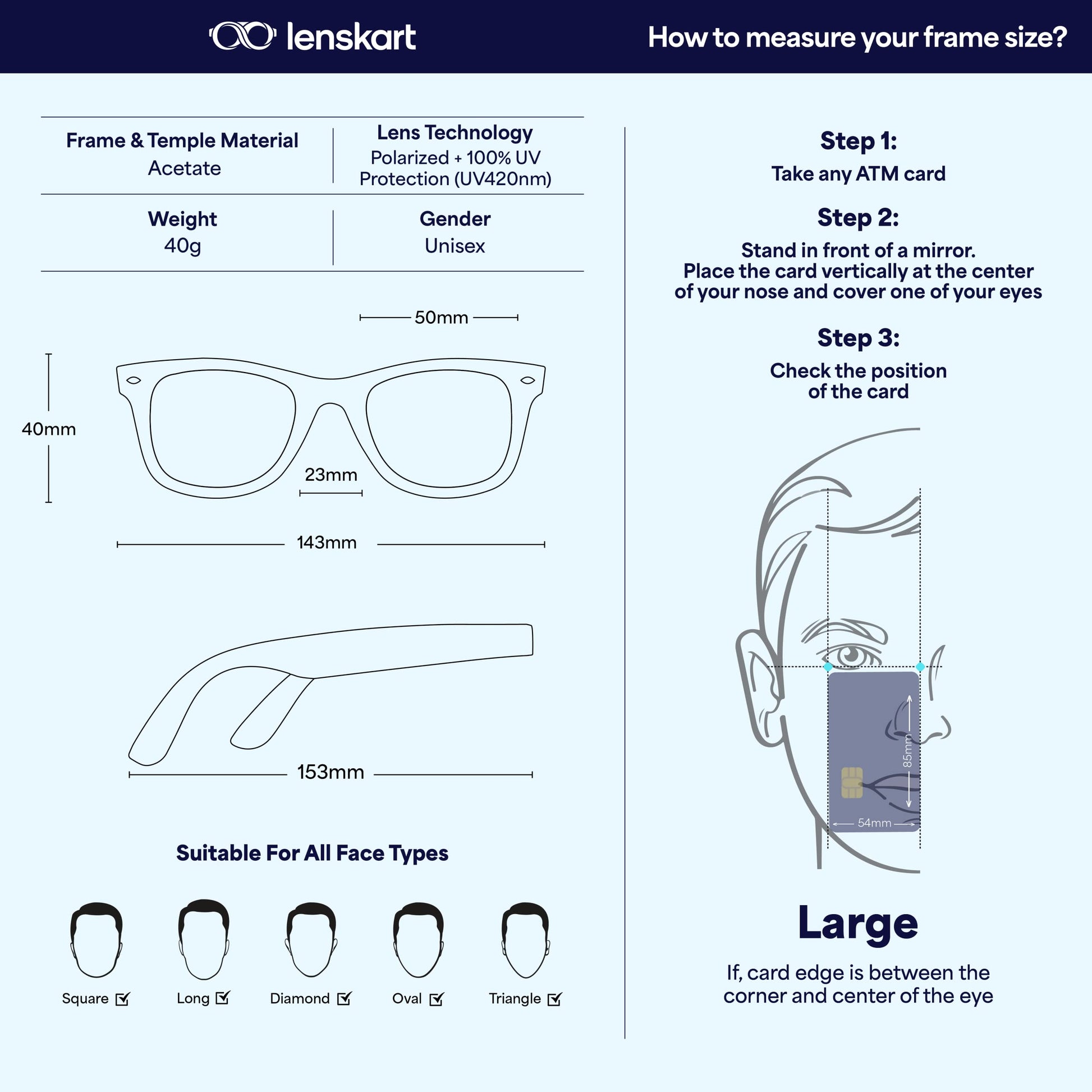 - FRAME SIZE:- Large | Frame width: 143mm | Frame Height: 40mm | Frame Dimensions: (49/50-23-153)mm