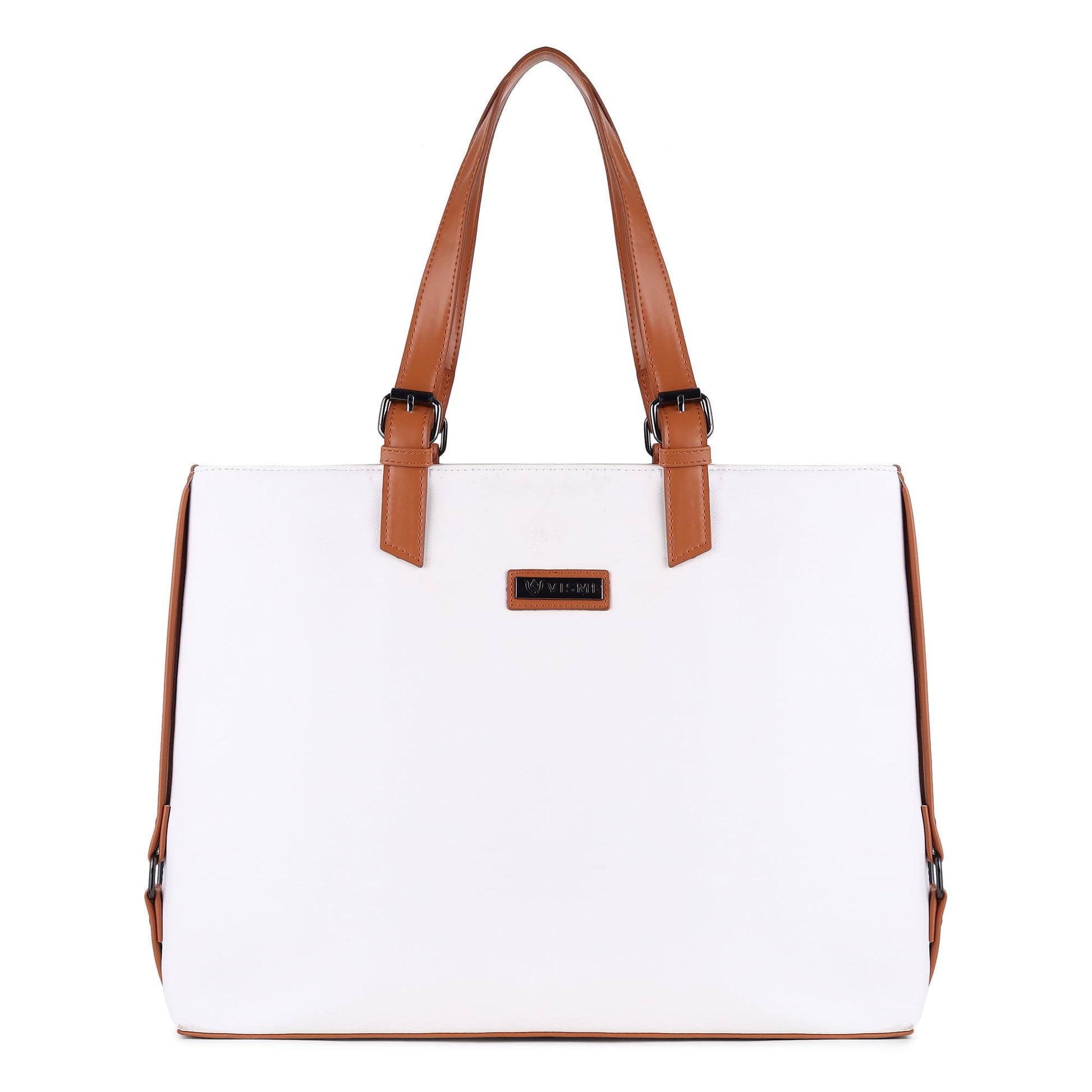 VISMIINTREND Vegan Leather Tote Shoulder Bags for Women Office Use, Fits Upto 15.6 Inch Macbook Laptops, Work/Travel/College Bag, Stylish Ladies Totes Purse Handbag, Gifts for Wife/Sisters (White)