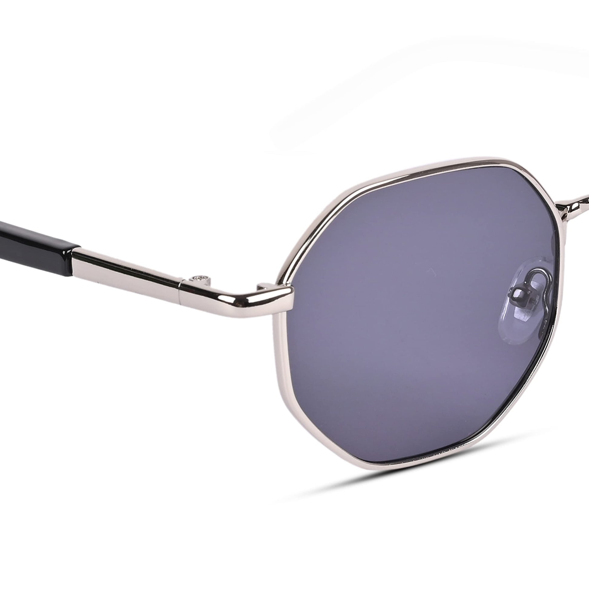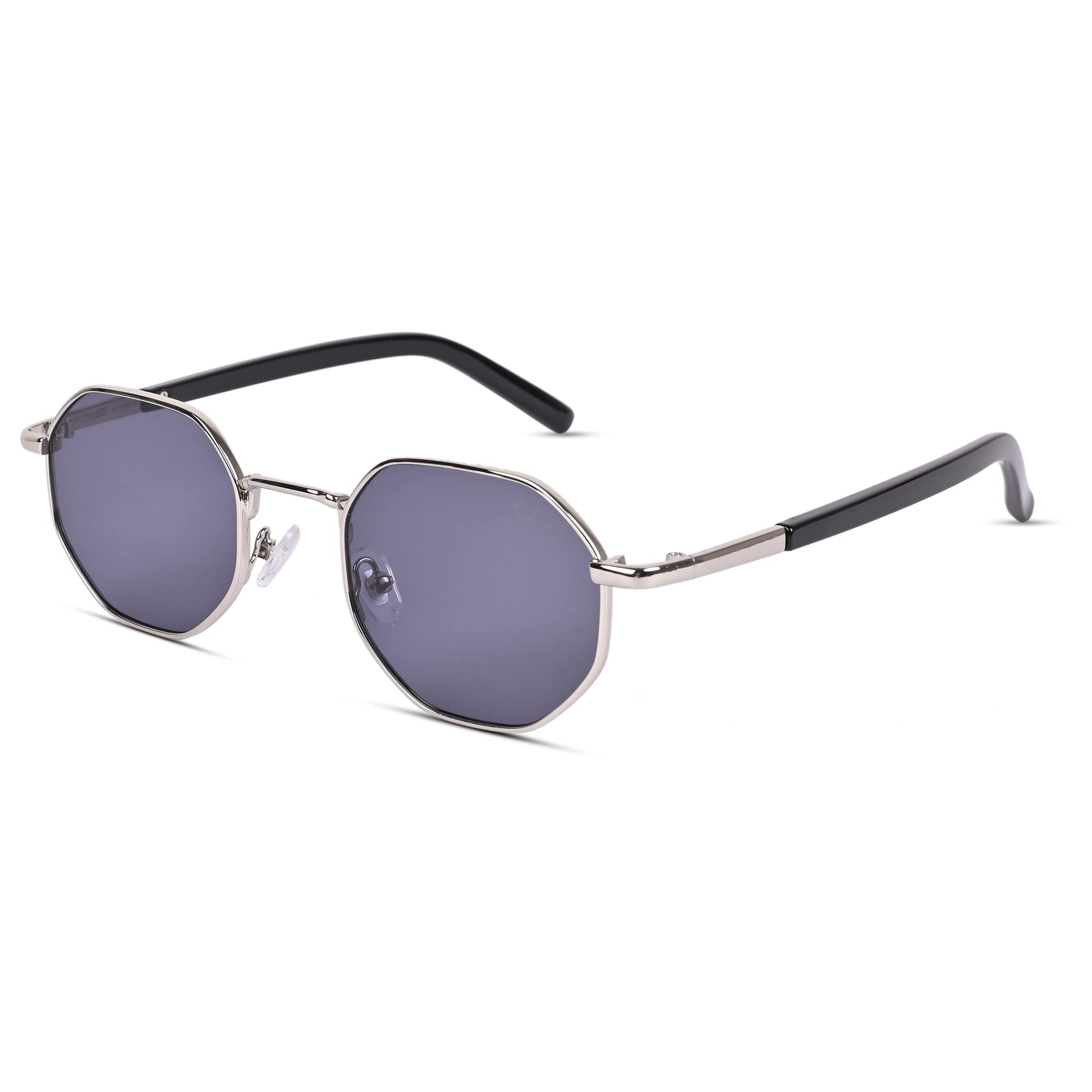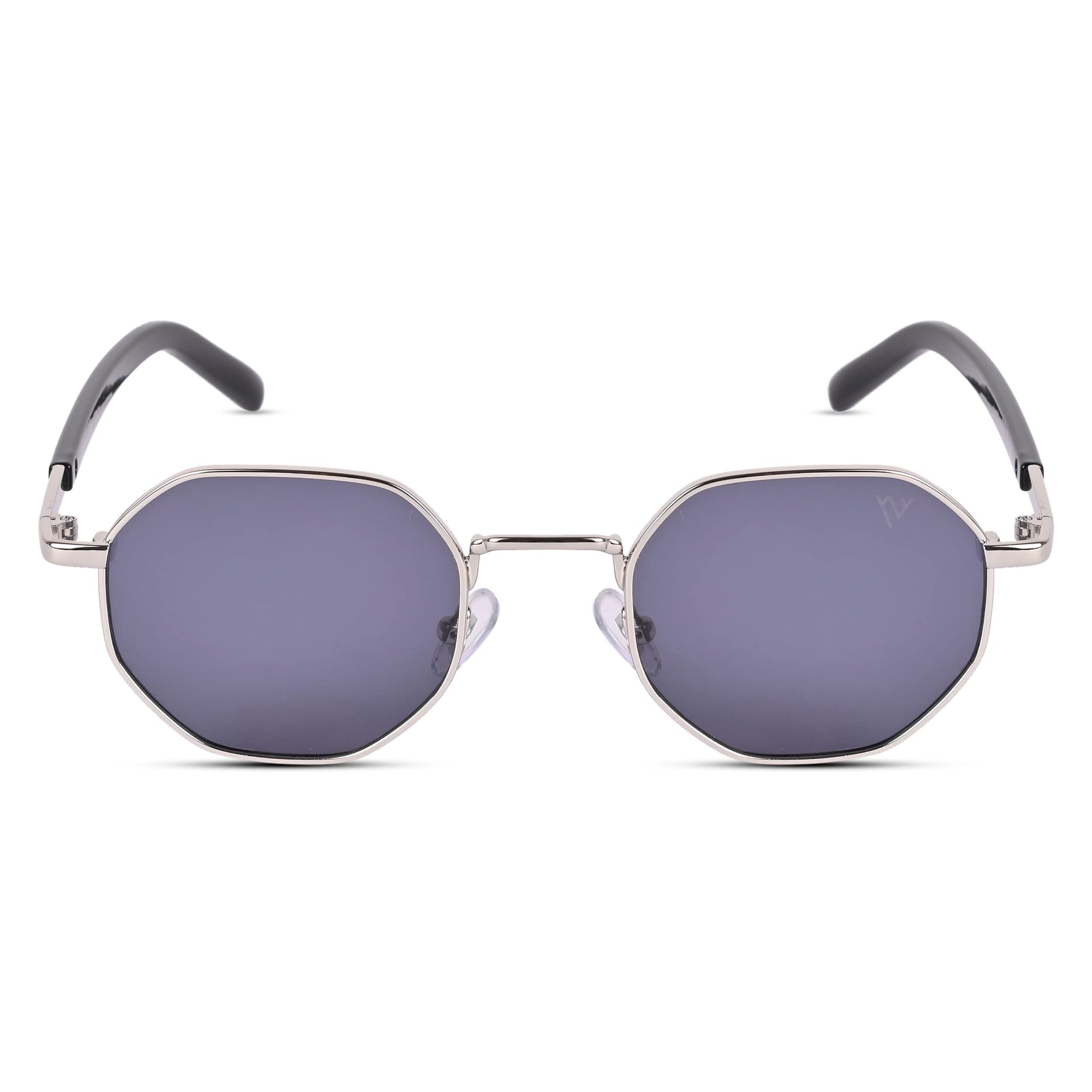 Voyage UV Protection Black Round Non-Polarized Sunglasses for Men & Women (2206MG3770 | Silver Frame | Black Lens | 48)