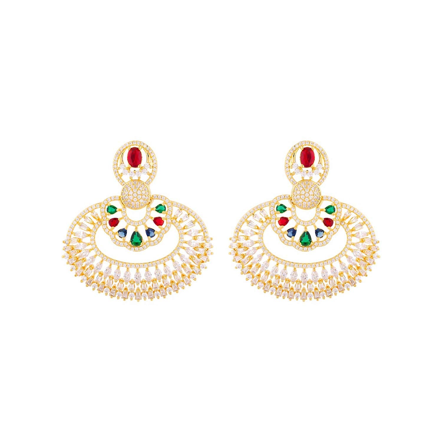 Voylla Coloured American Diamond CZ Gems Embellished Earrings