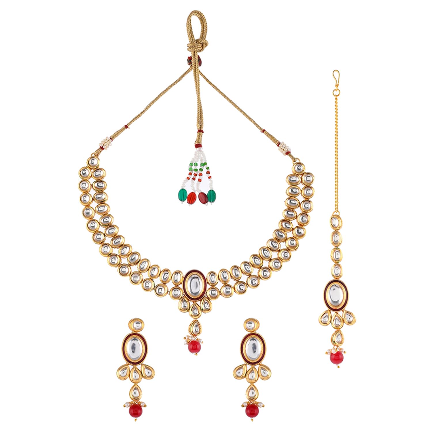 VOYLLA Kundan Elegance Round Cut Kundan Maang Tika Set For Women|Jewellery Set For Women|Womens Gift|Gift For Her|