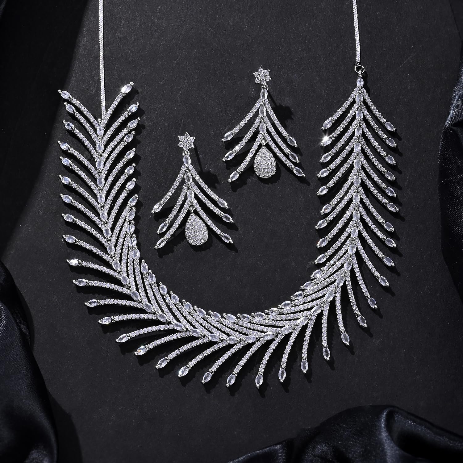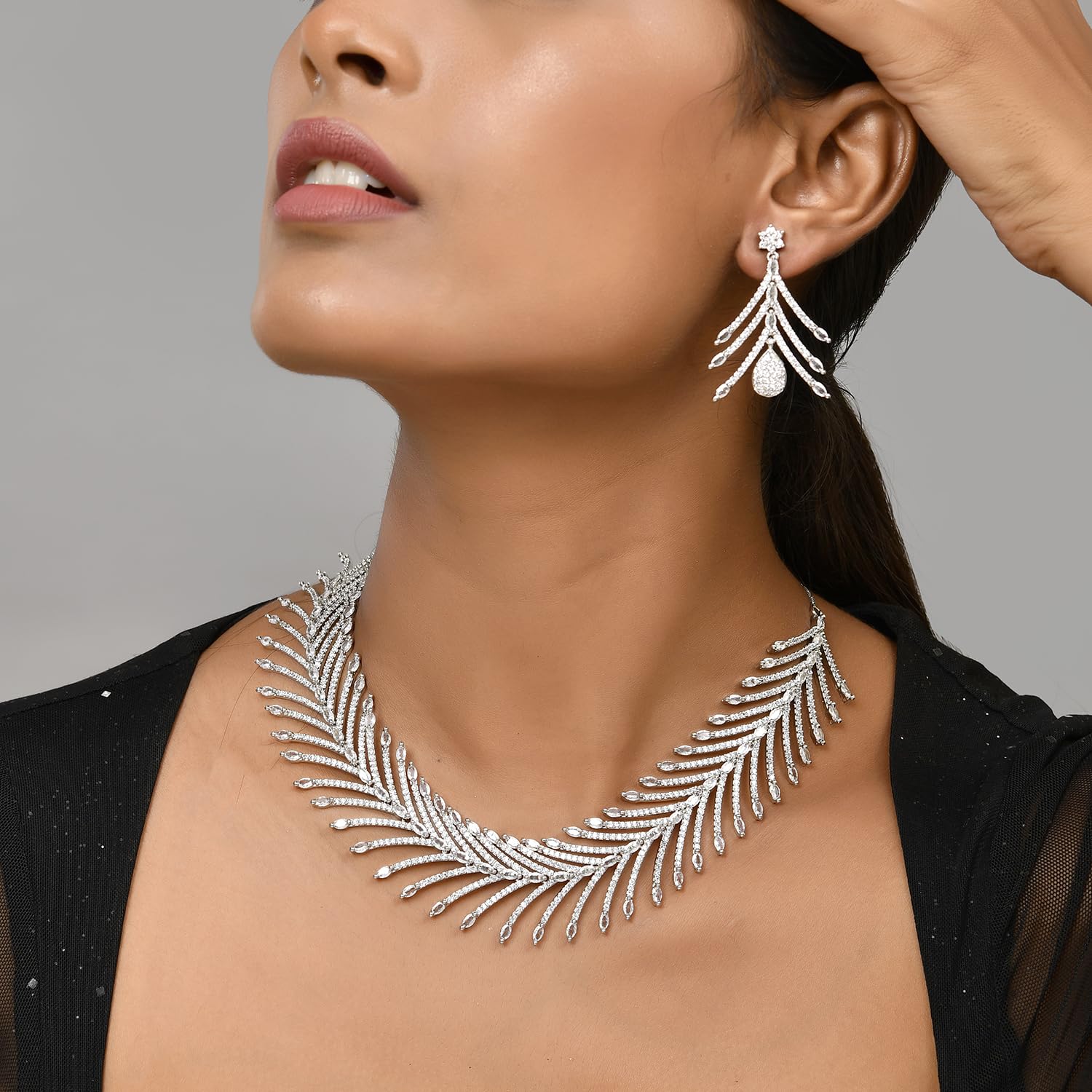 - Quality: Crafted from high-quality brass and plated with lustrous white rhodium, this necklace set is designed to last. The meticulous craftsmanship ensures that each crystal is perfectly set, enhancing the overall brilliance and allure of the jewelry.