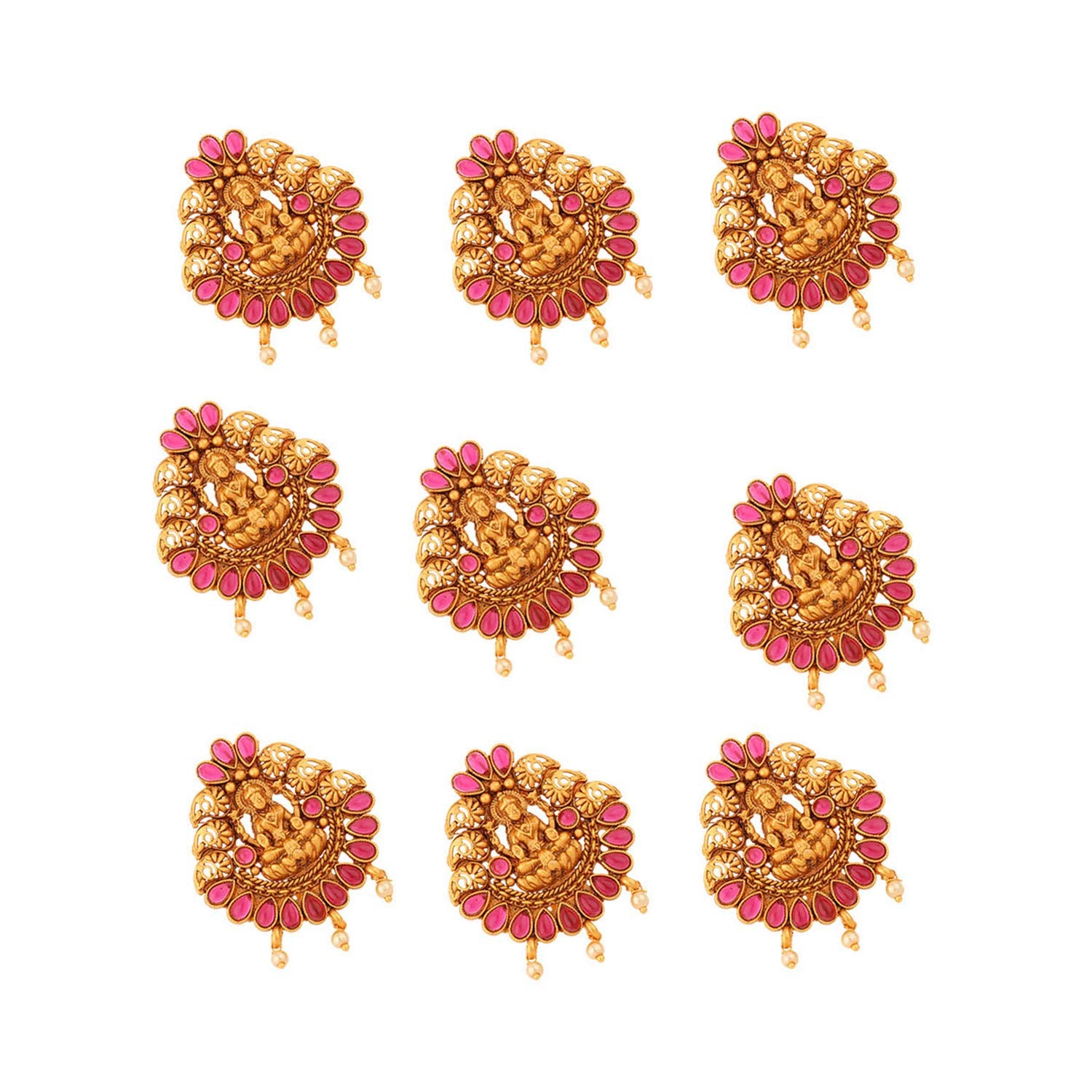 Temple bridal set complete with all required accessories. made from brass. match with traditional bridal attire. this piece of jewelry comes with the voylla assurance of quality and durability. caring for your fashion jewelry: we, at voylla, take care of every piece of jewelry so that you don't spend hours caring for them. but do remember, fashion jewelry lasts longer when kept dry and free of chemicals. follow this simple rule: your jewelry should be the last thing you put on and the first thing you take off.