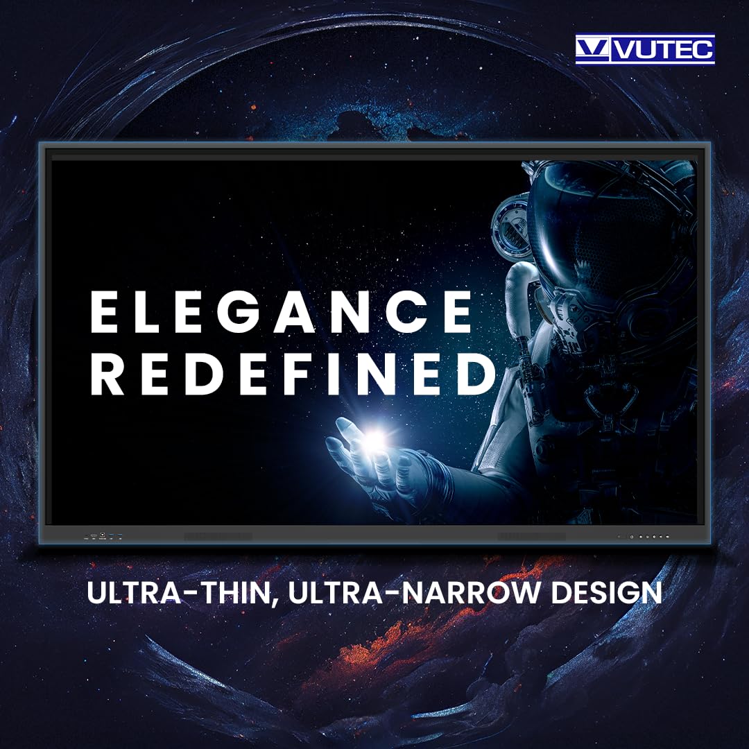Vutec 75 Inches Interactive Flat Panel | 8GB RAM 128GB ROM | Android 14 | USB, HDMI, VGA, Display Ports | Smart Digital Board Screen Ideal for Teaching, Content Creation & Office Use