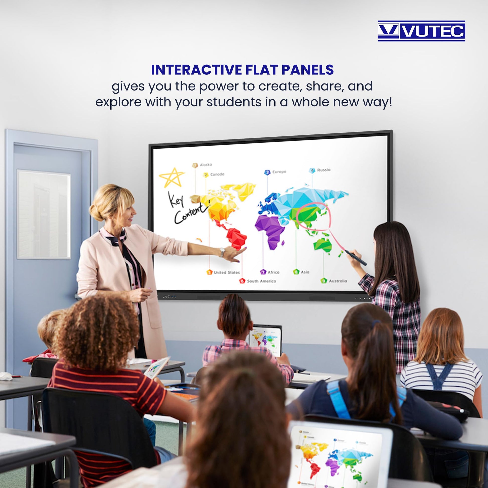 Details: Introducing the Vutec Android 14 Smart Interactive Digital Board, a cutting-edge educational tool designed to enhance learning in classrooms, schools, colleges, institutes, and office environments. This interactive digital board is equipped with 8GB of RAM and 128GB of ROM, ensuring seamless performance and ample storage capacity for educational content. Its multi-touch screen display, coupled with bonding technology, allows for low parallax writing and provides wider viewing angles, making it suitable for interactive teaching and collaborative activities.