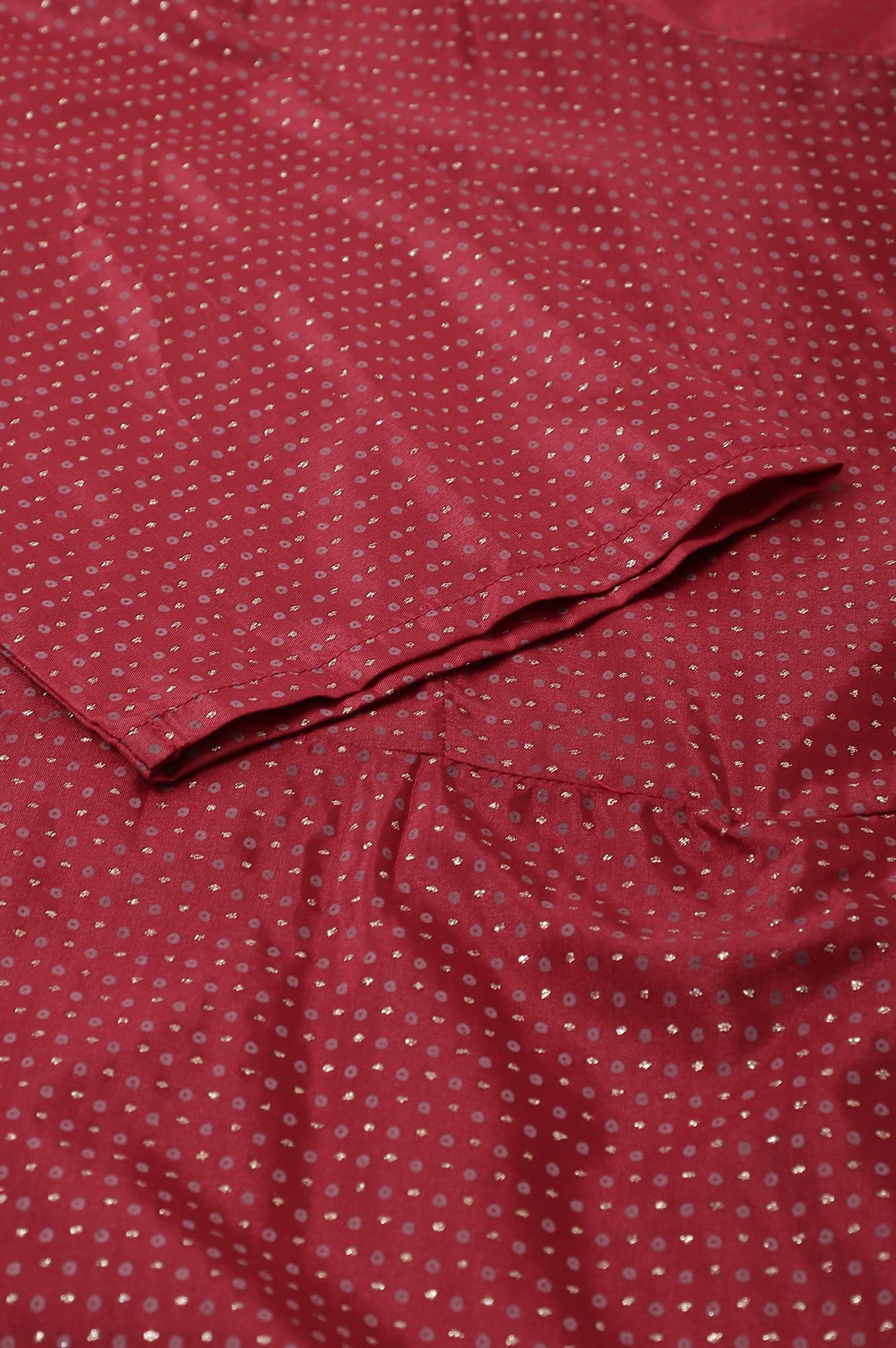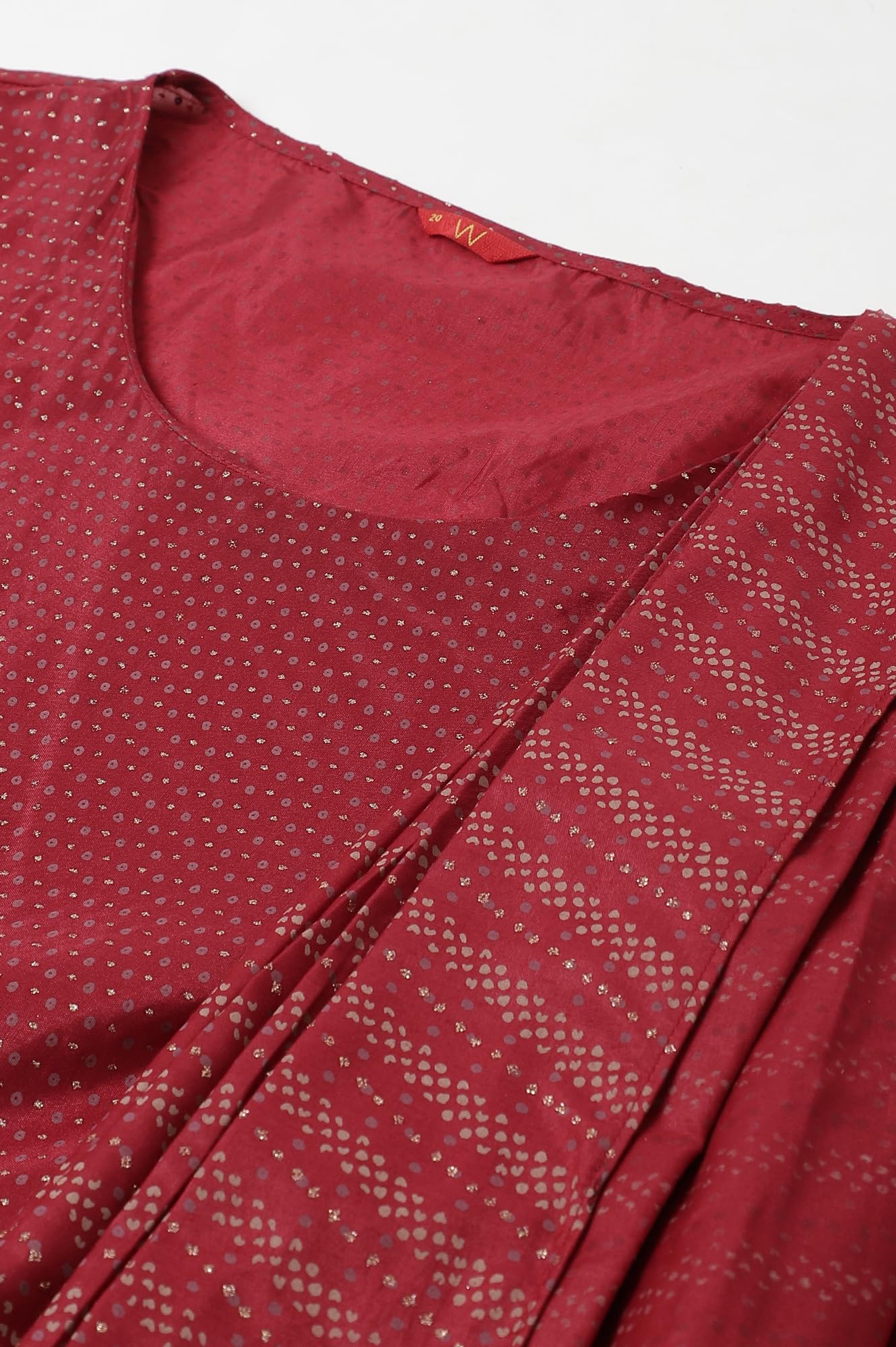 - Plus Size Maroon Insta Saree Dress with Embroidered Belt