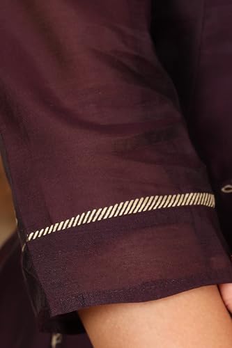 W for Woman Purple Floral Printed Dori Embroidered Chanderi Flared Kurta with Mock Layer and Dupatta Set (Size: M)-24AUWS11194-124358
