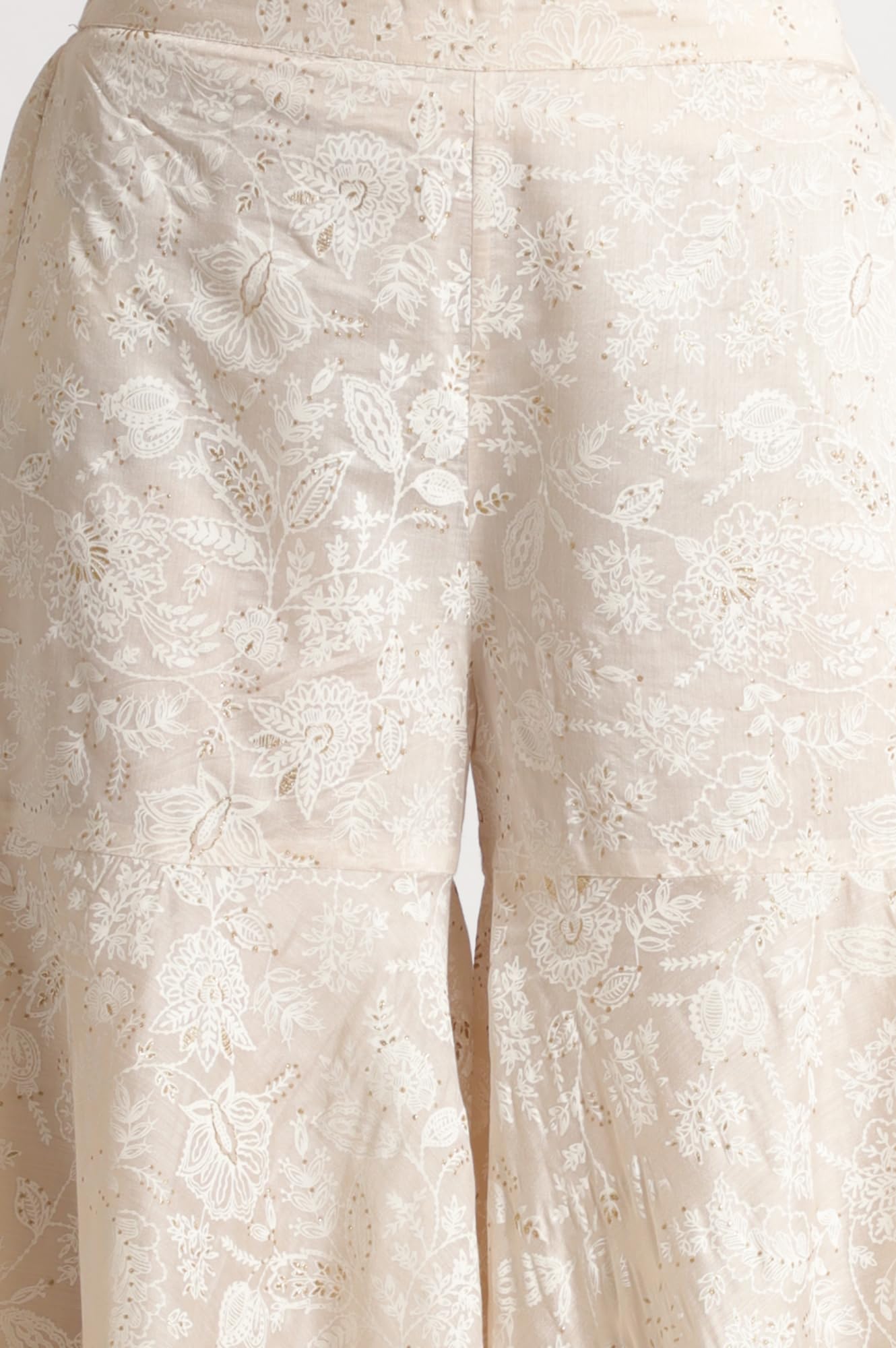 W for Woman White Printed Chanderi Short Kurta, Sharara and Dupatta Set (Size: XL)-WS12349-125210