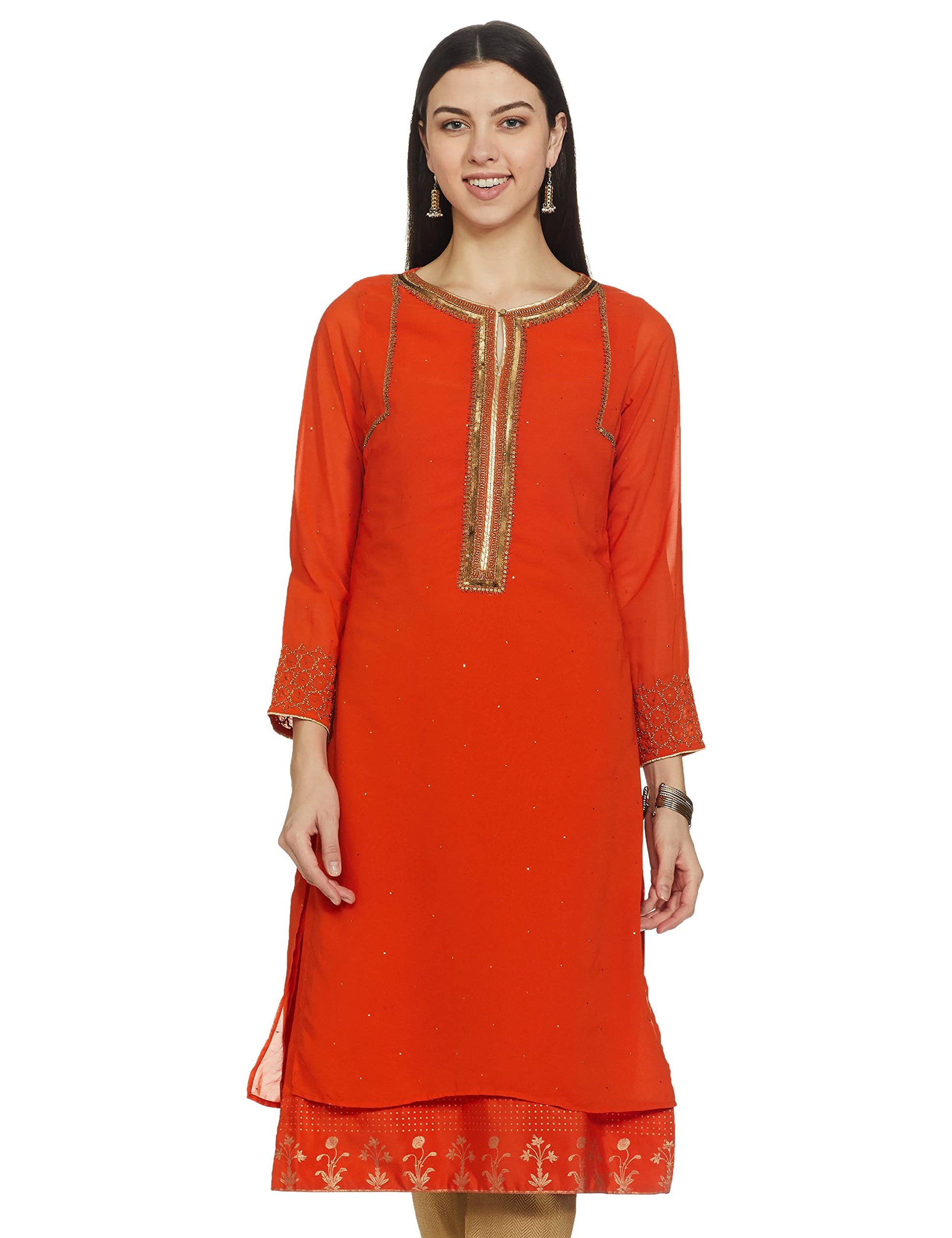 W for Woman Women's Synthetic Straight Kurta (18AUS11660-66257_Orange_6)