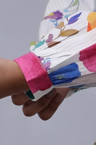 W Women White Floral Print Cotton Straight Dress_24FEW11363-810664_XS