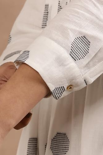 W Women White Polka Print Cotton Flarred Dress_24FEW11081-313884_L