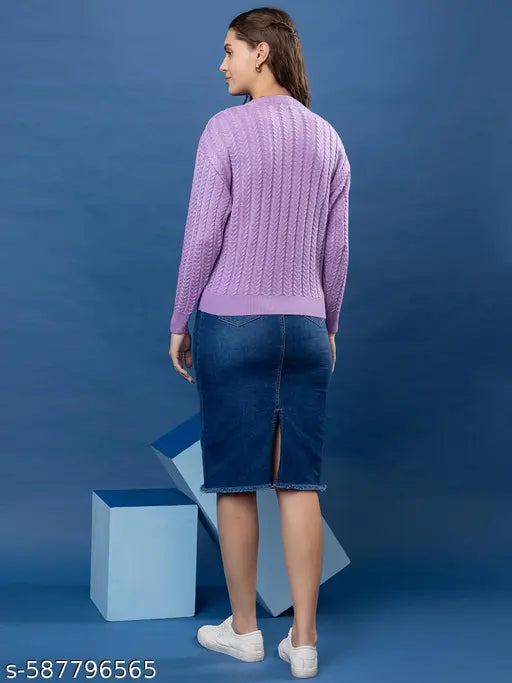 Wear lusso Women's Round Neck Stylish Winter Cable Design Pullover Sweater