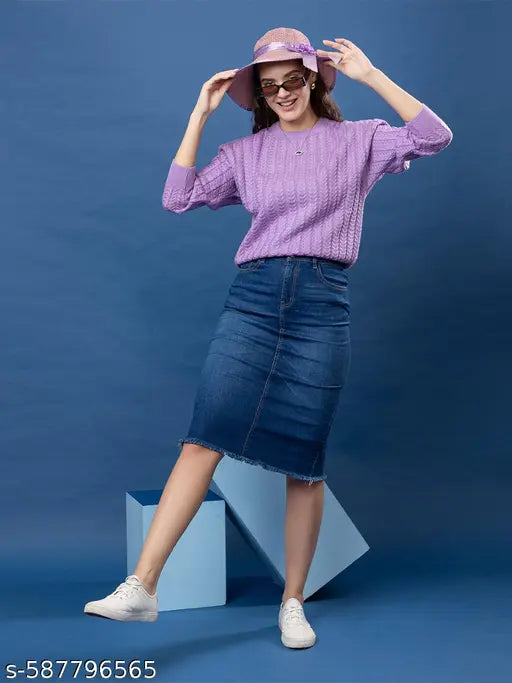 Elevate your winter fashion with the Wear Lusso Women's Round Neck Stylish Winter Cable Design Pullover Sweater. This