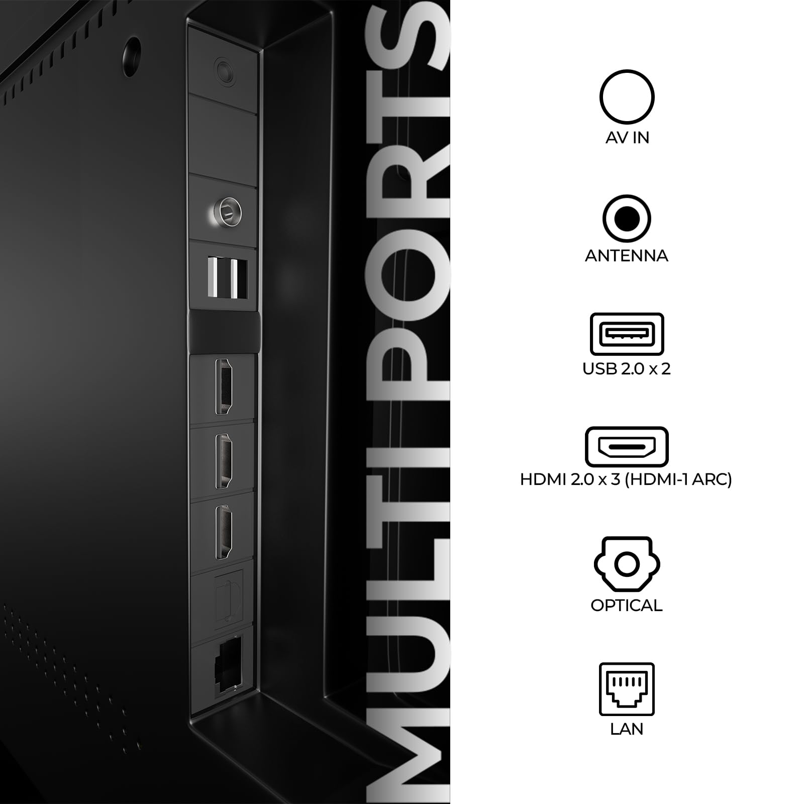- Connectivity: Dual band Wifi | Bluetooth v5.0 | HDMI ports 2.0 x 3 to connect personal computer, laptop, set top box, gaming console | USB ports 2.0 x 2, to connect hard drives or other USB device