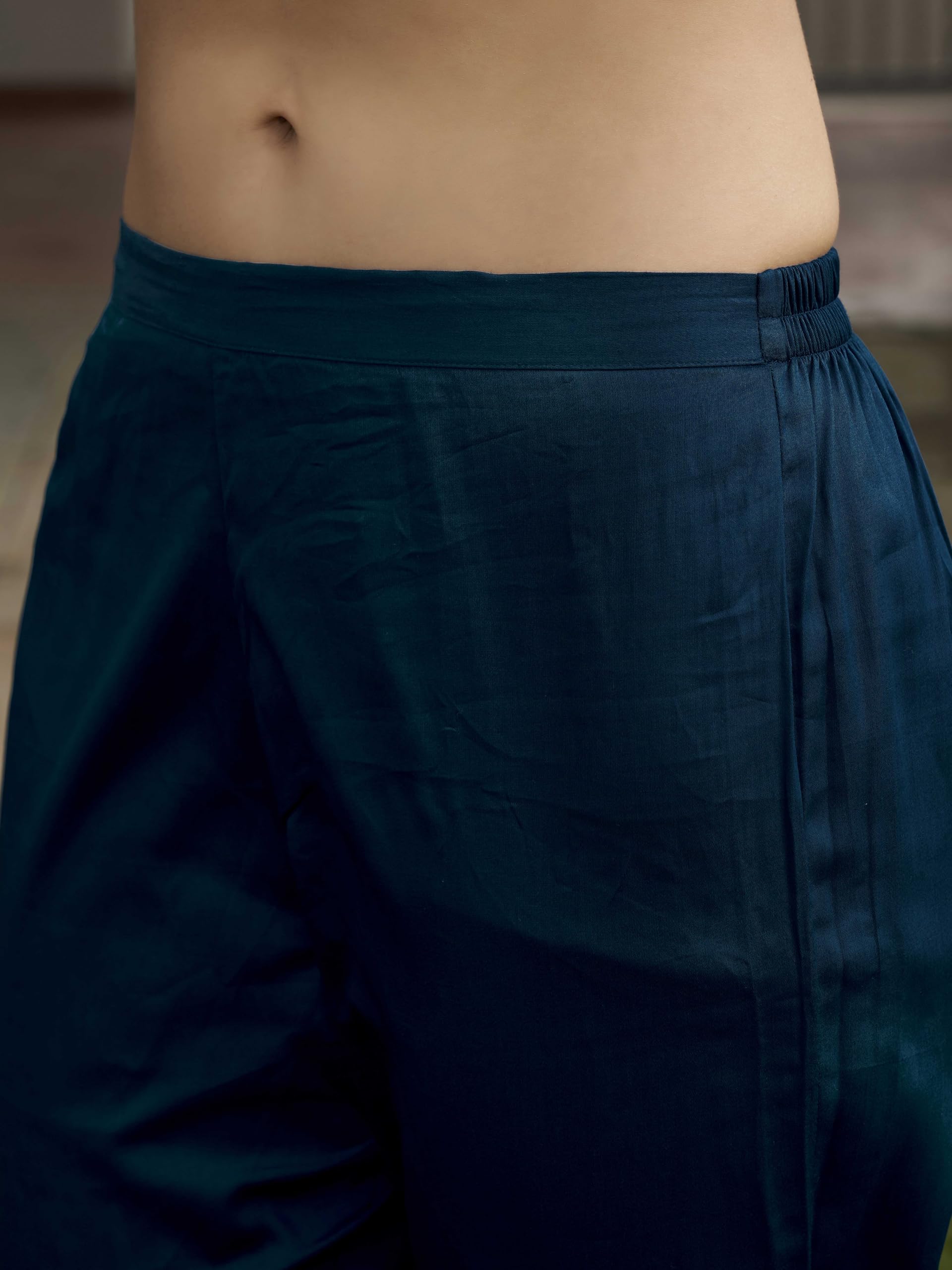 - Teal Blue Embroidered Party Wear Kurta Set with trousers and Dupatta, Ocassion: Traditional wear, Casual Wear, party wear, evening wear