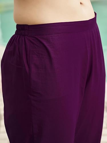 Womanista Women's Wine Color Pure Cotton Sequinns Embroidered Flared Kurta set(Kurtaset_1368_L)
