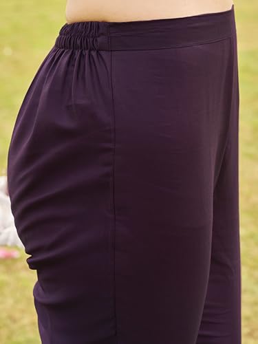 Womanista Women's Wine Cotton Blend Multi Flared Alia Cut Kurta with Pant and Dupatta (Kurtaset_1304_XXL)