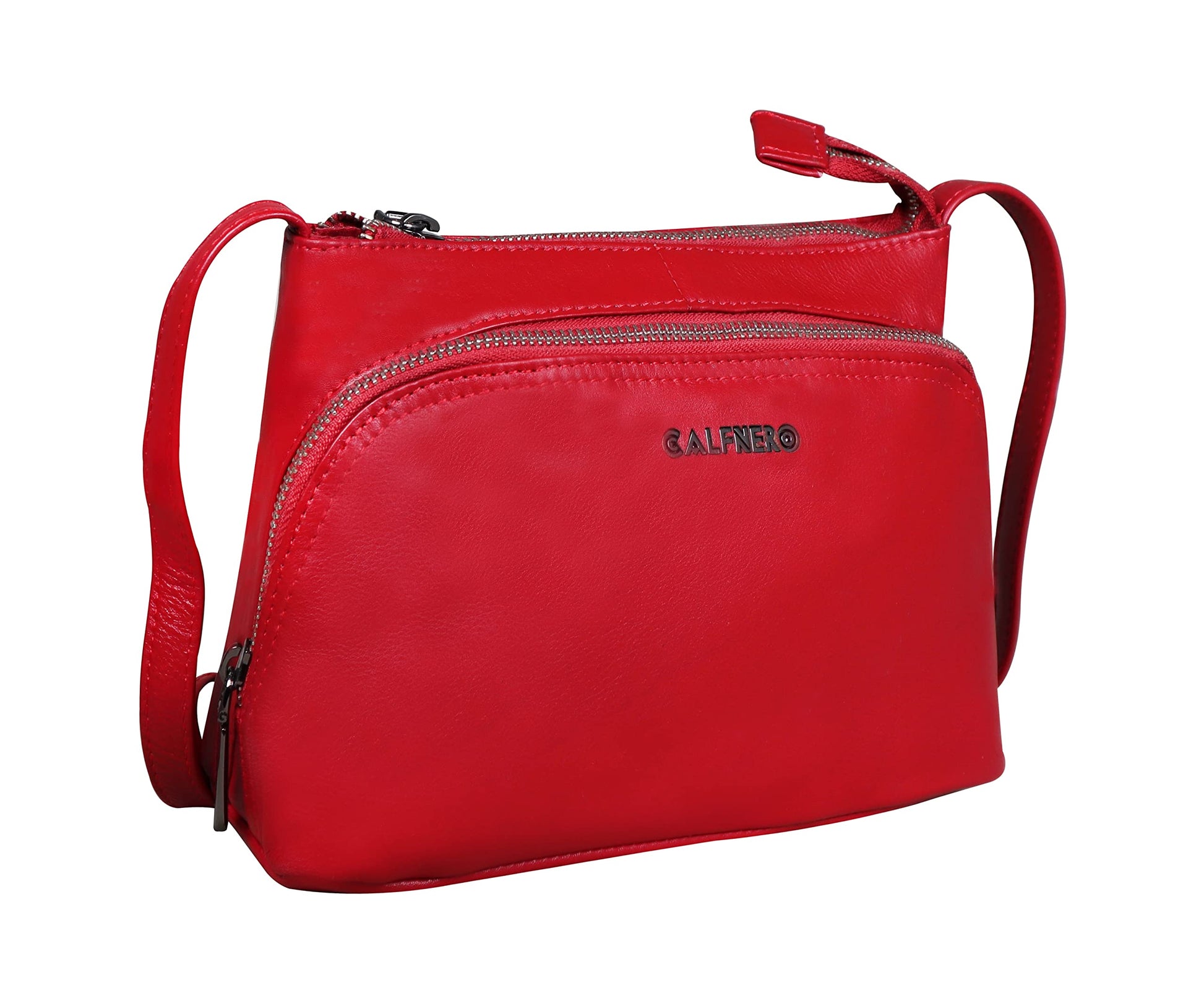 Women's Genuine Leather Sling Bag-Women's Casual College, Office Bag-Women's Cross Body Sling Bag by Calfnero (Red)