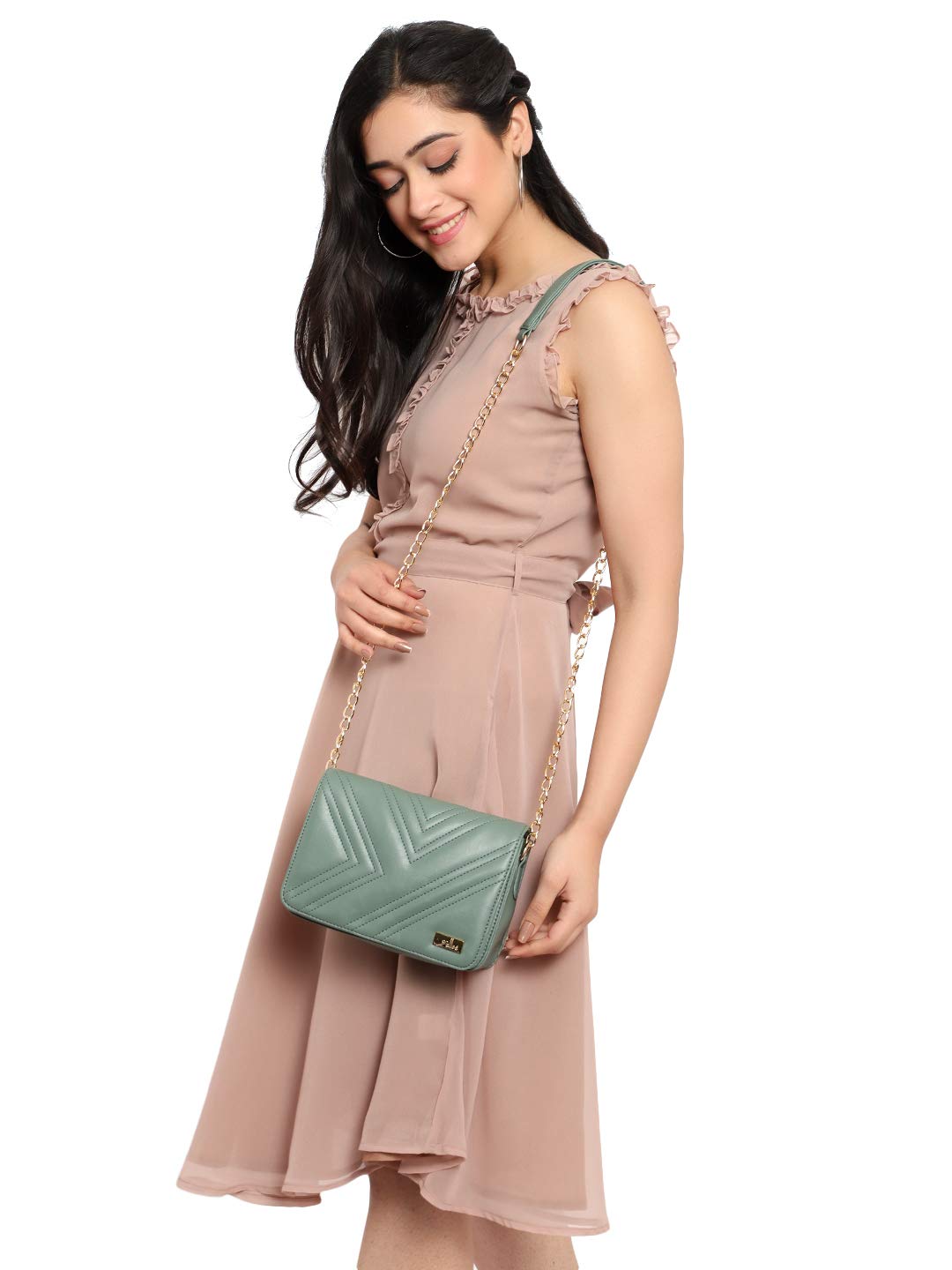 Yelloe womens Sling Bag with quilting effect in Turquiose