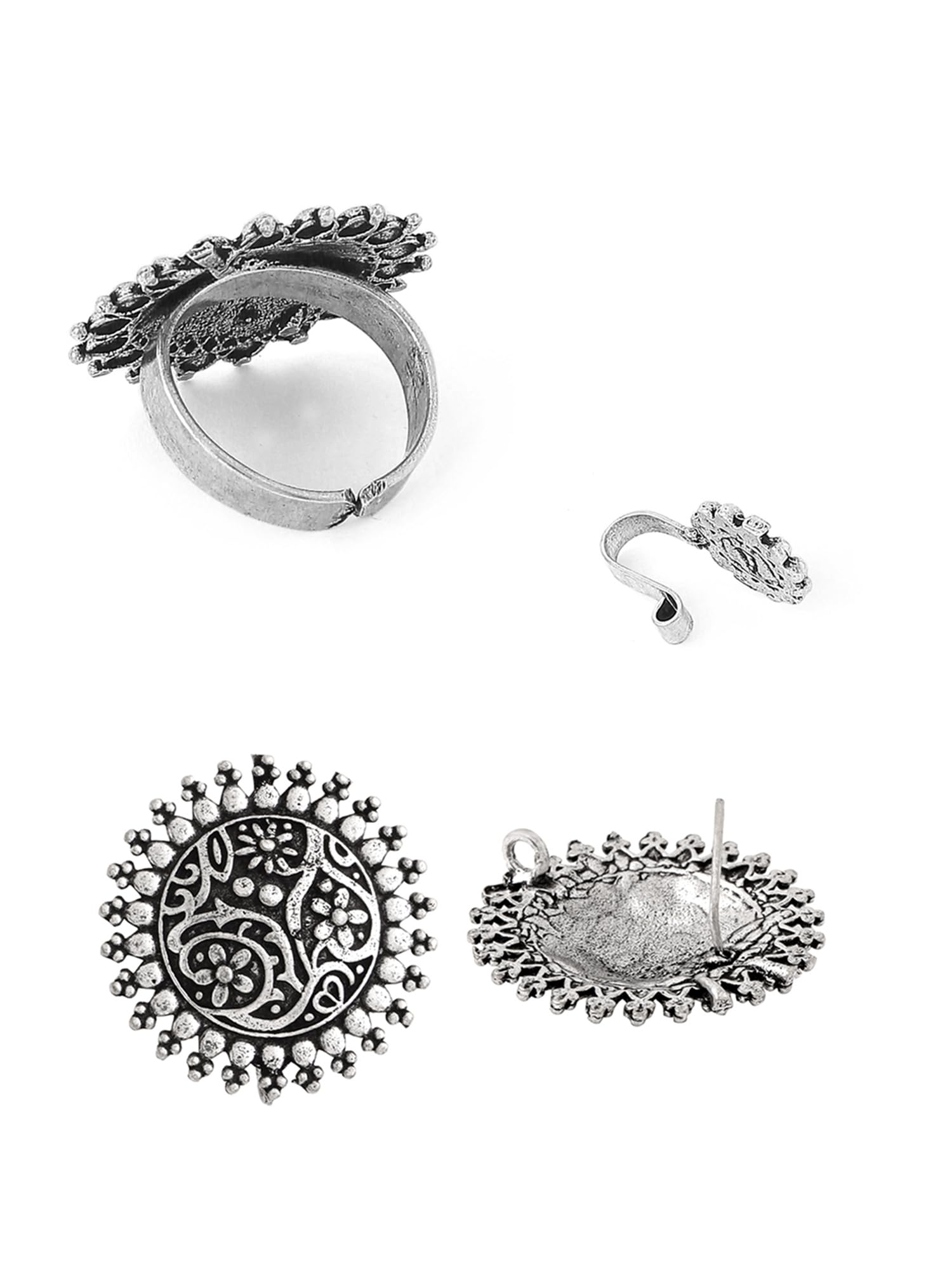 - Modern, yet Ethnic Looks- German Silver Oxidized Necklace set for women representing a classic fusion of exquisite craftsmanship and feminine elegance, Designer crafted choker Necklace set with earrings ring nose pin which is stylish contemporary fringe celebrity Style.Our Product is perfect for valentines Anniversary Birthday gift for Women,girlfriend,Wife.