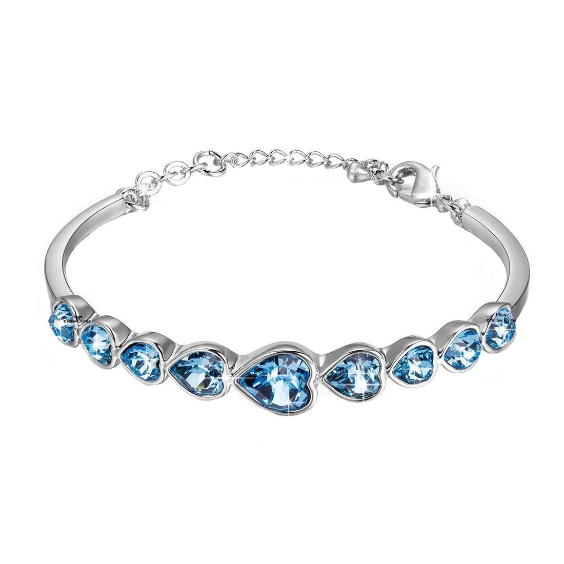 - Elegant Silver toned Blue Crystals from Swarovski Eye catched Heart Shaped bracelet for women with Adjustable Chain Smooth Finished Shining attractive Color Combination. Our Product is perfect for valentines Anniversary Birthday gift for girlfriend and Wife.
