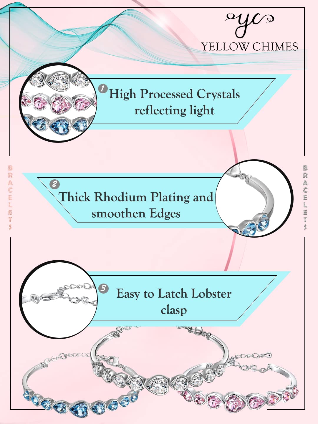 Yellow Chimes Valentine Gift for Girls Bracelet for Women A5 High Grade Blue Crystal Bracelets for Women | Valentine Special Heart Bracelet for Girls | Birthday Anniversary Gift For Girlfriend Wife