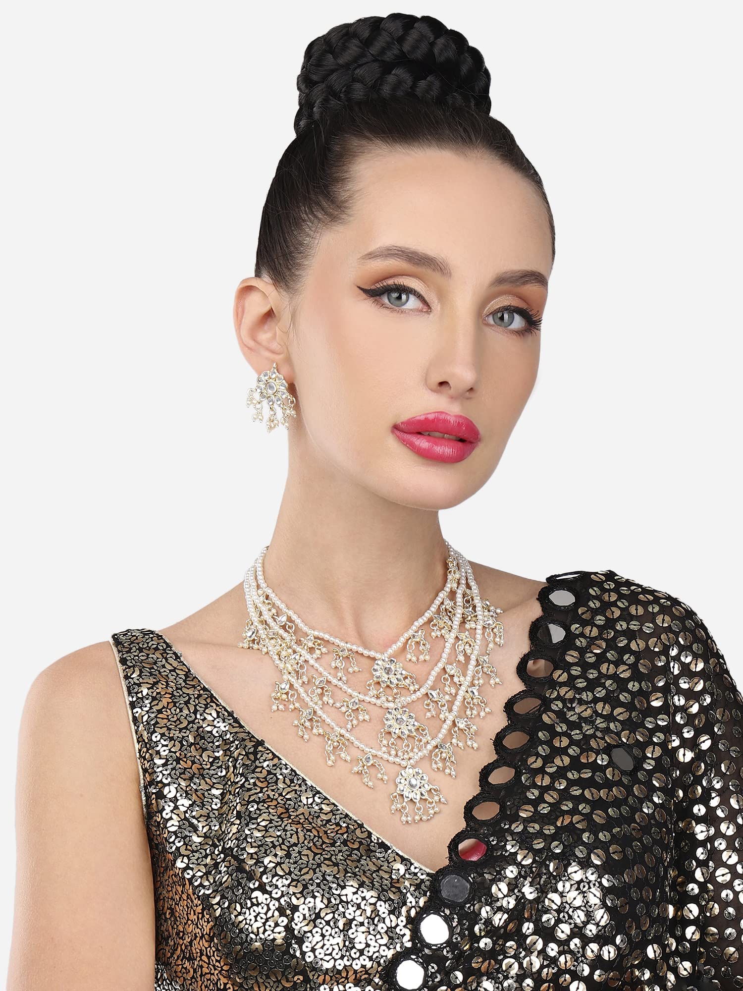 ZAVERI PEARLS Ethnic Kundan & Pearls Multi Layers Bridal Necklace Set For Women-ZPFK8689