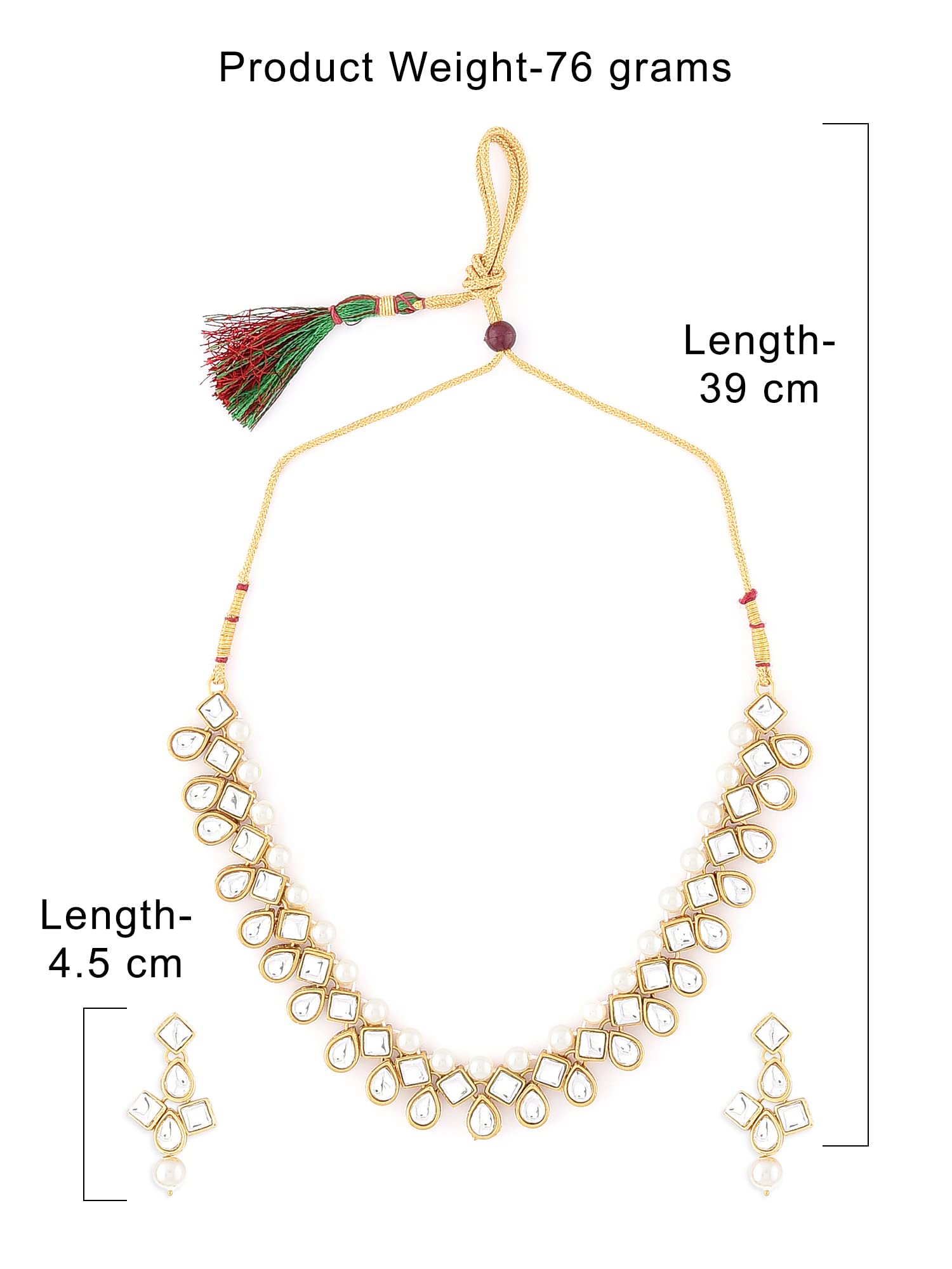 - Dimensions: Necklace Length-39 cm,Earring Length-4.5 cm,Product Weigth-76 grams