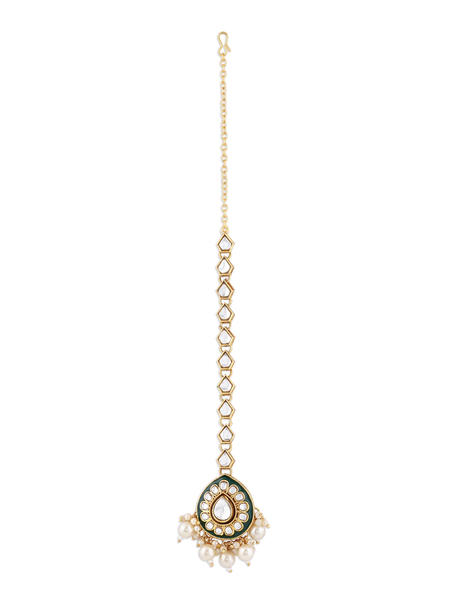 ZAVERI PEARLS Green Meenakari Kundan Bridal Long Dazzling Necklace Earring Maangtikka Set For Women-ZPFK17761