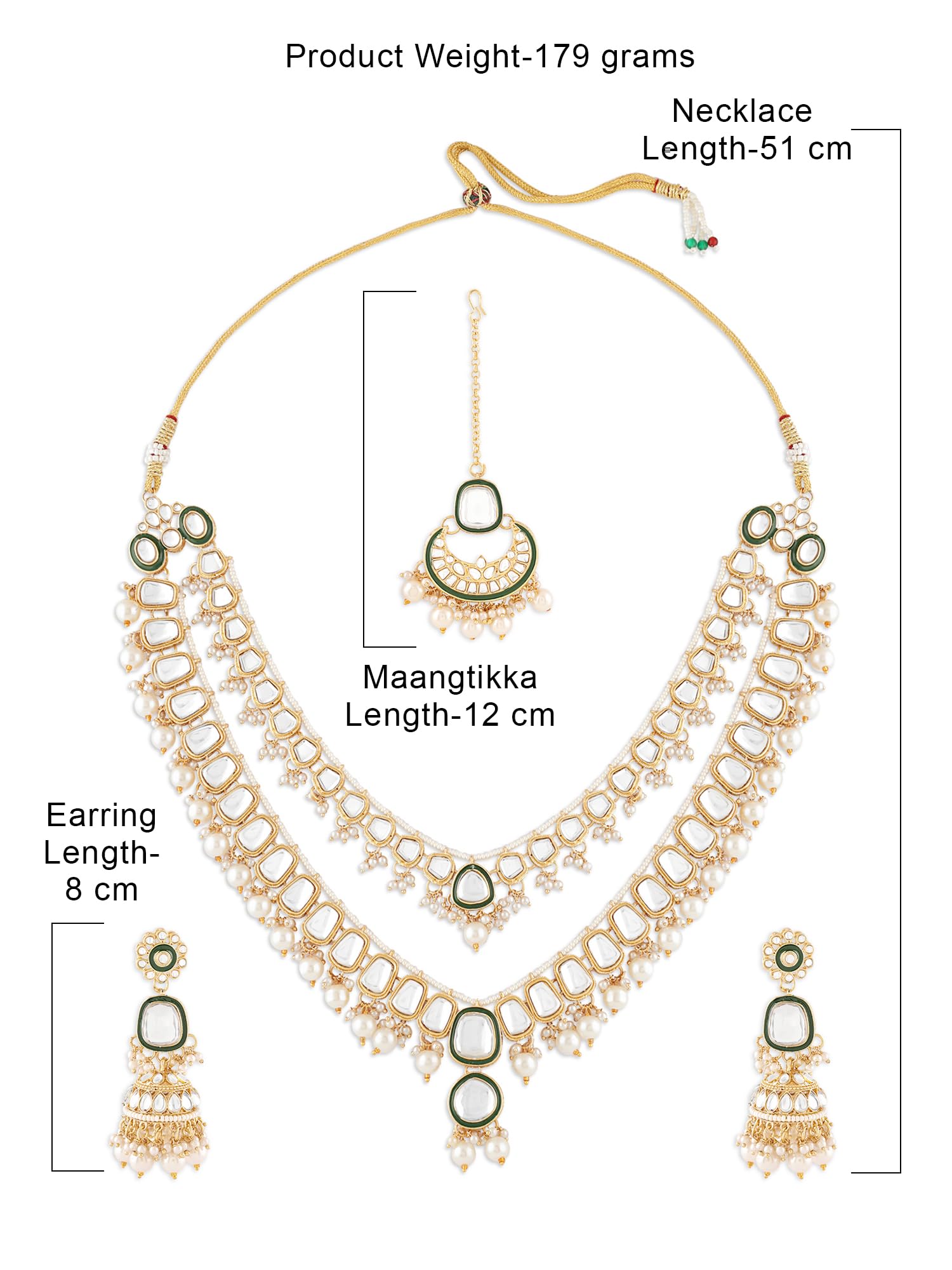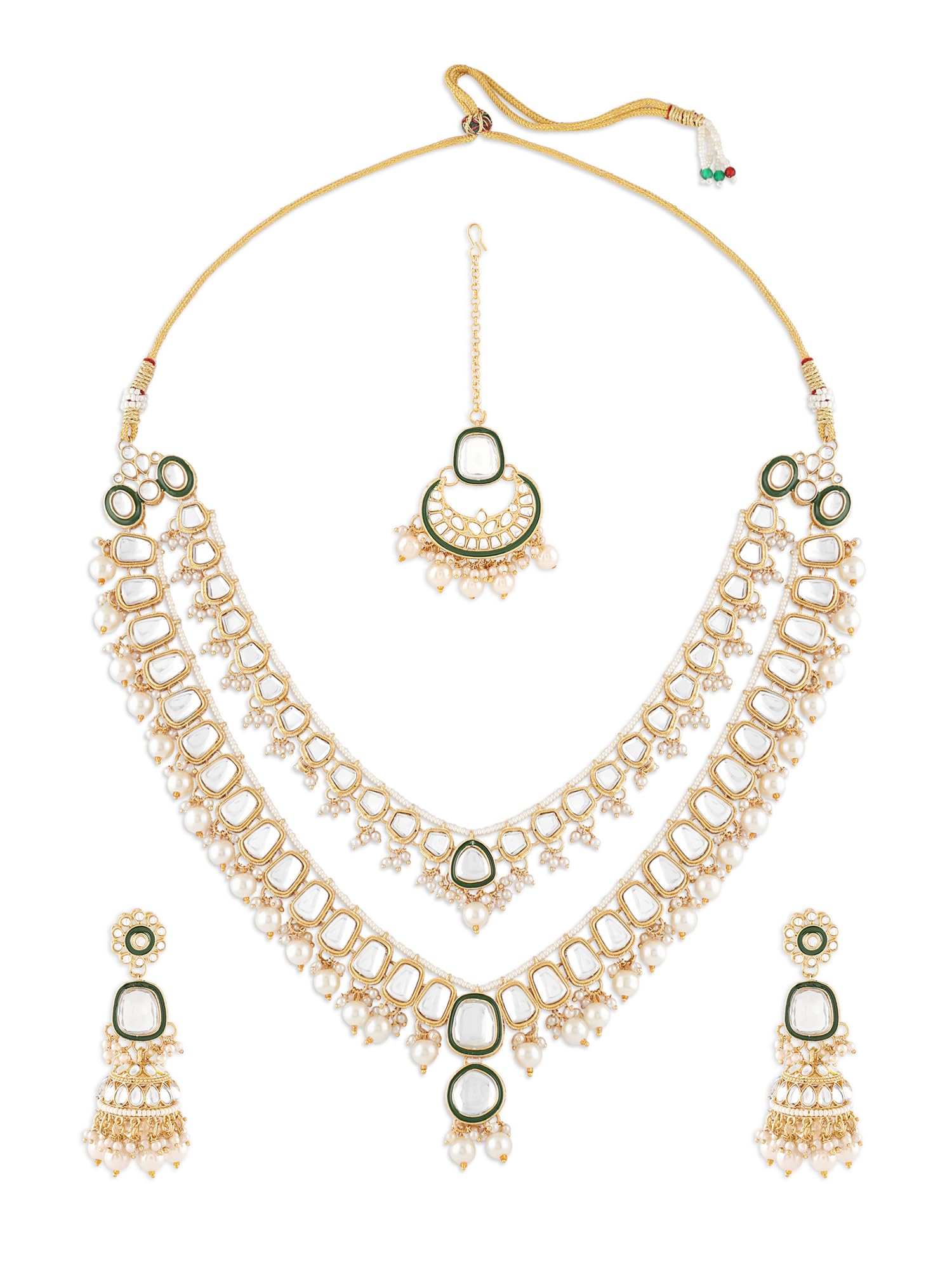 ZAVERI PEARLS Green Meenakari Kundan Pearls Layered Bridal Necklace Earring & Maangtikka Set For Women-ZPFK17357