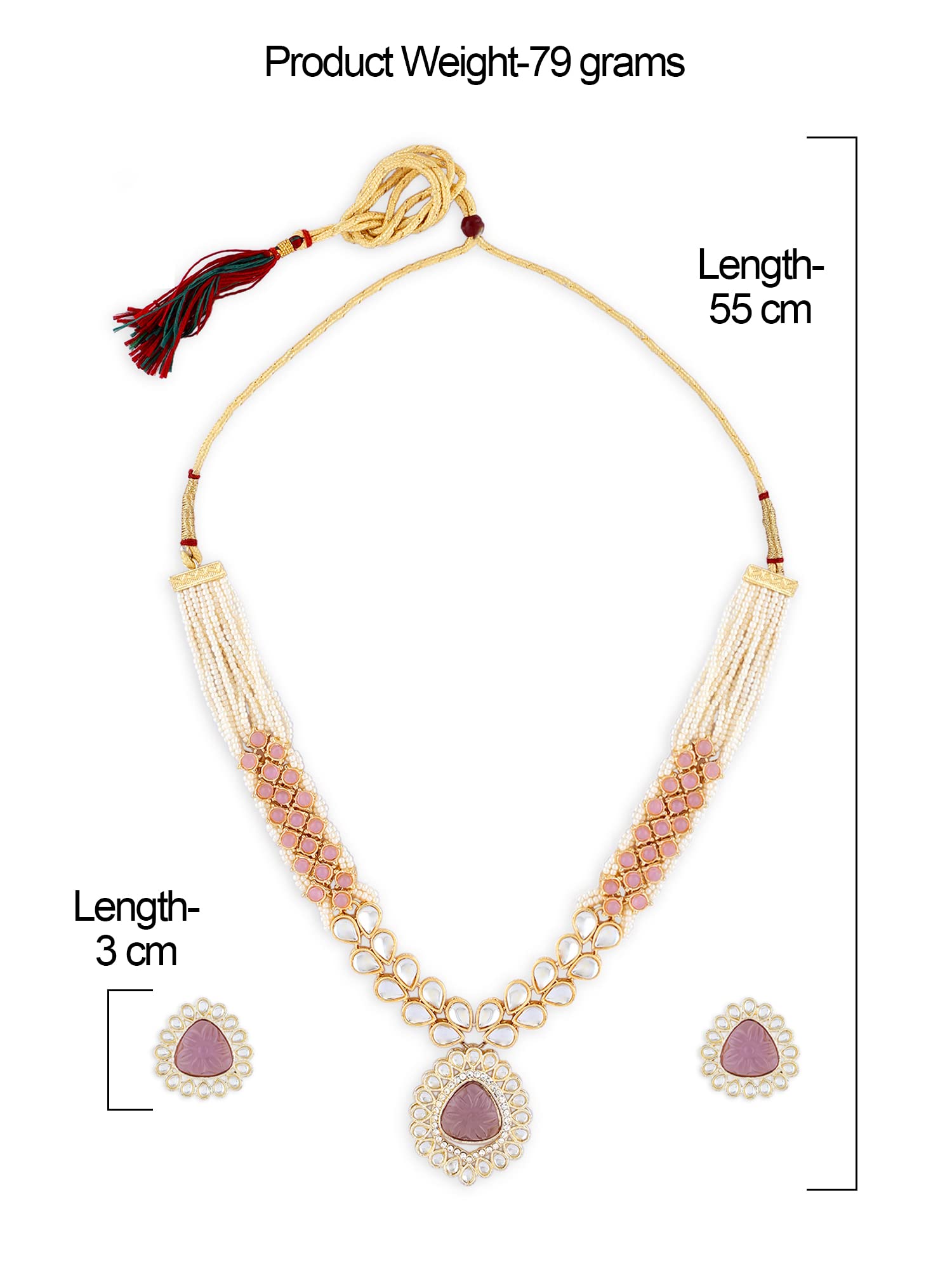 ZAVERI PEARLS Pink Purple Stones Embellished Kundan Necklace Earring & Ring Set For Women-ZPFK15937