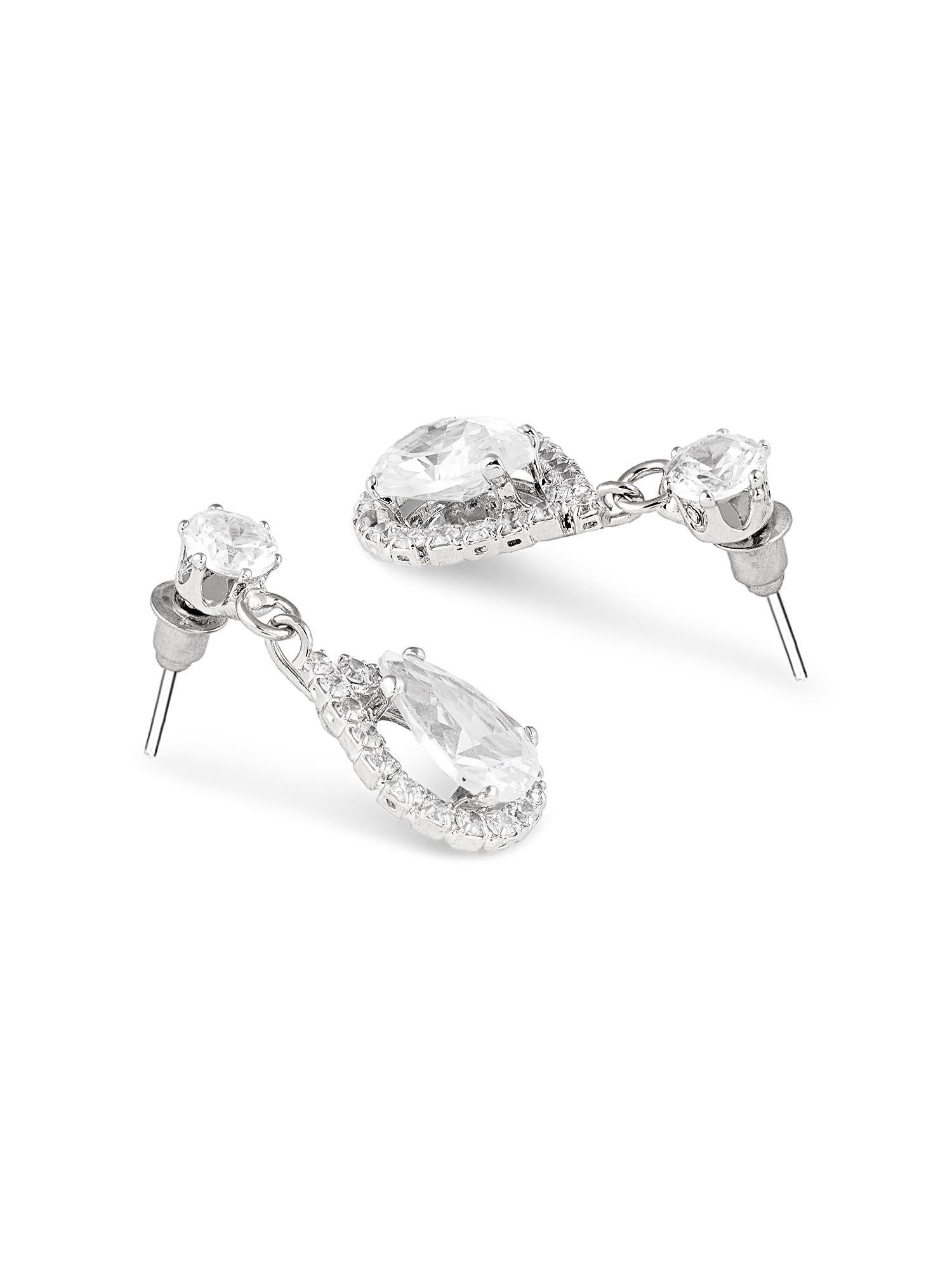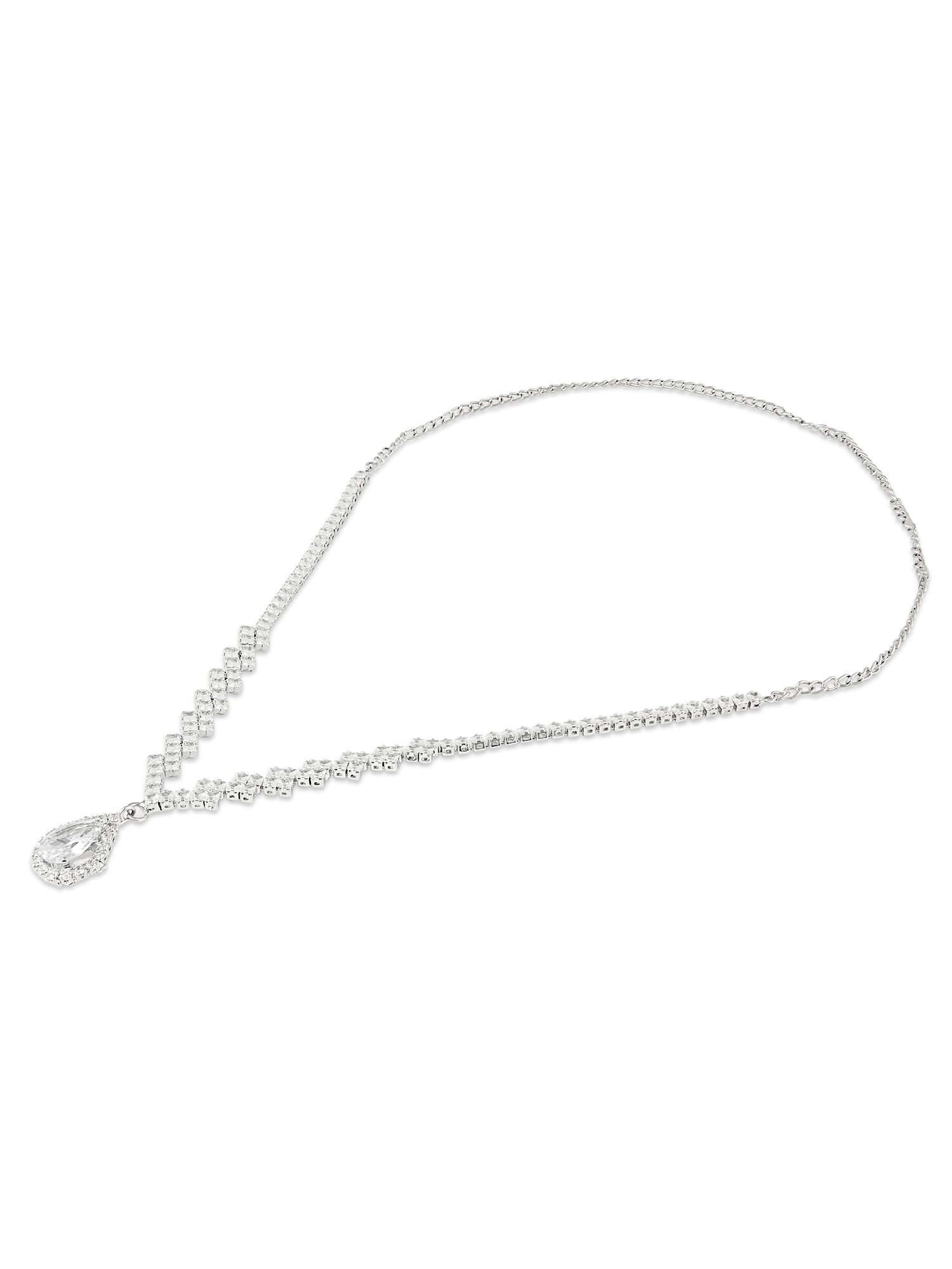 ZAVERI PEARLS Silver Tone Dazzling Austrian Diamonds Embellished Contemporary Necklace & Earring Set For Women-ZPFK18200