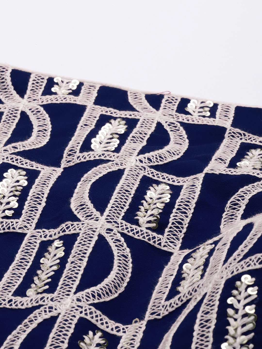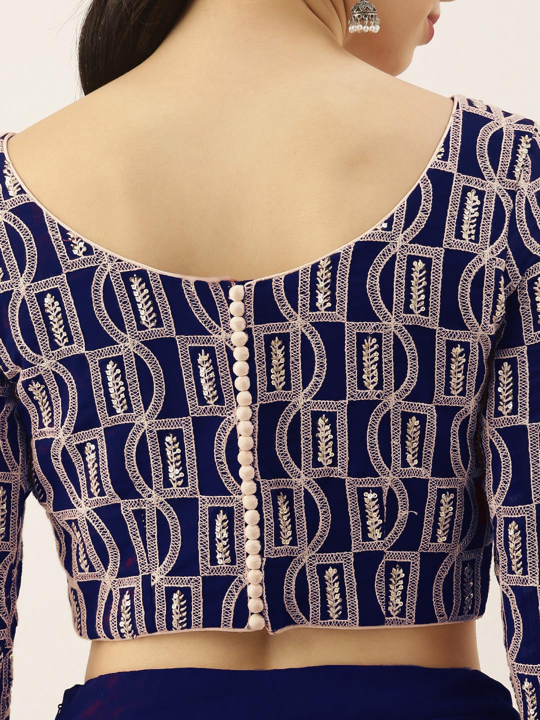 Zeel Clothing Womens Chikankari Sequins Embroidered Georgette Semi-Stitched Lehenga and Choli Set (5050-Blue-Wedding-Girlish-Latest-Design; Free Size)