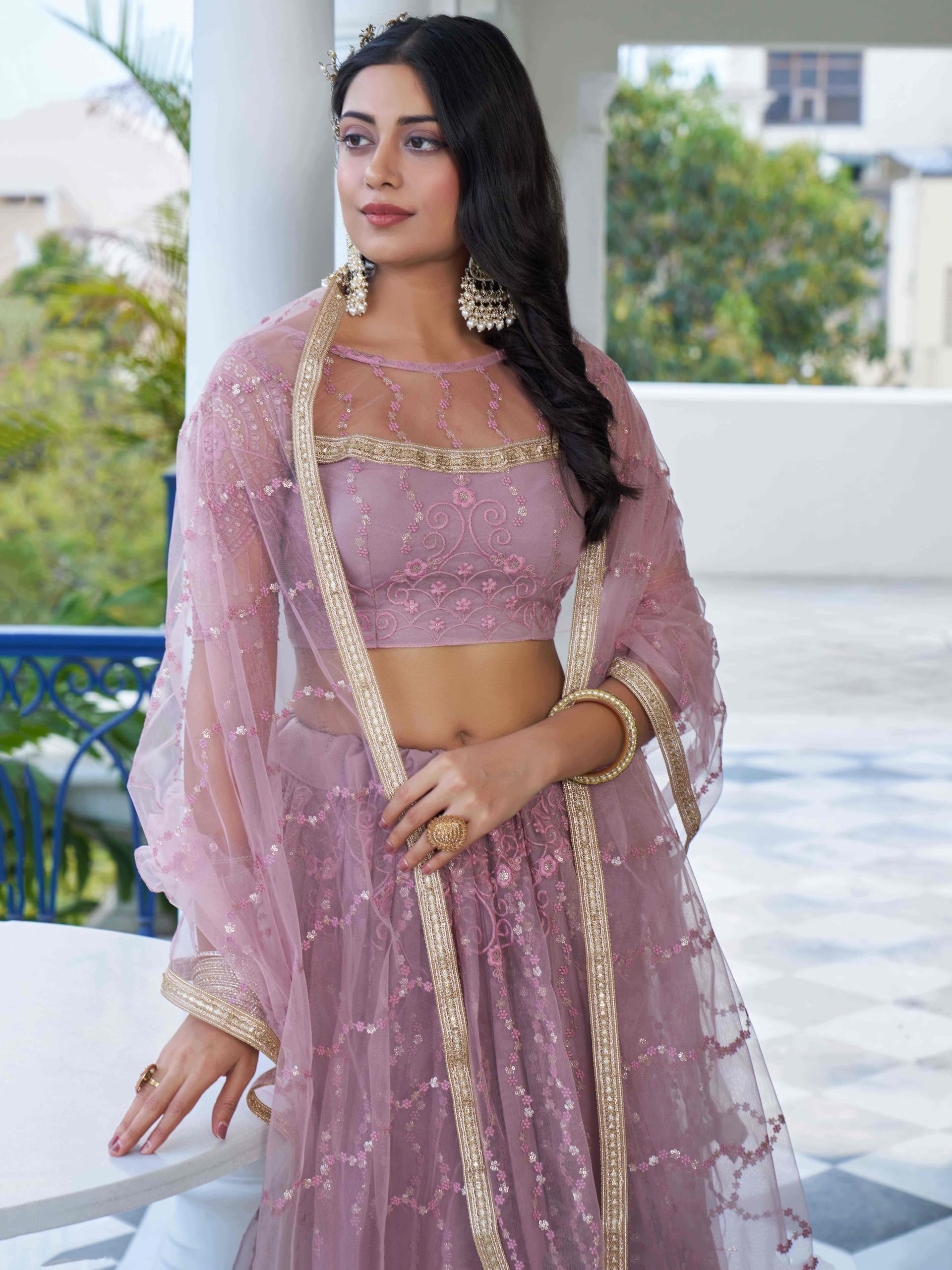Zeel Clothing Women's Cotton Thread Sequins Work Embroidery Soft Net Lehenga Choli with Dupatta (NFH-2138-Pink-Women-Lehenga-Choli-Latest; Free Size)