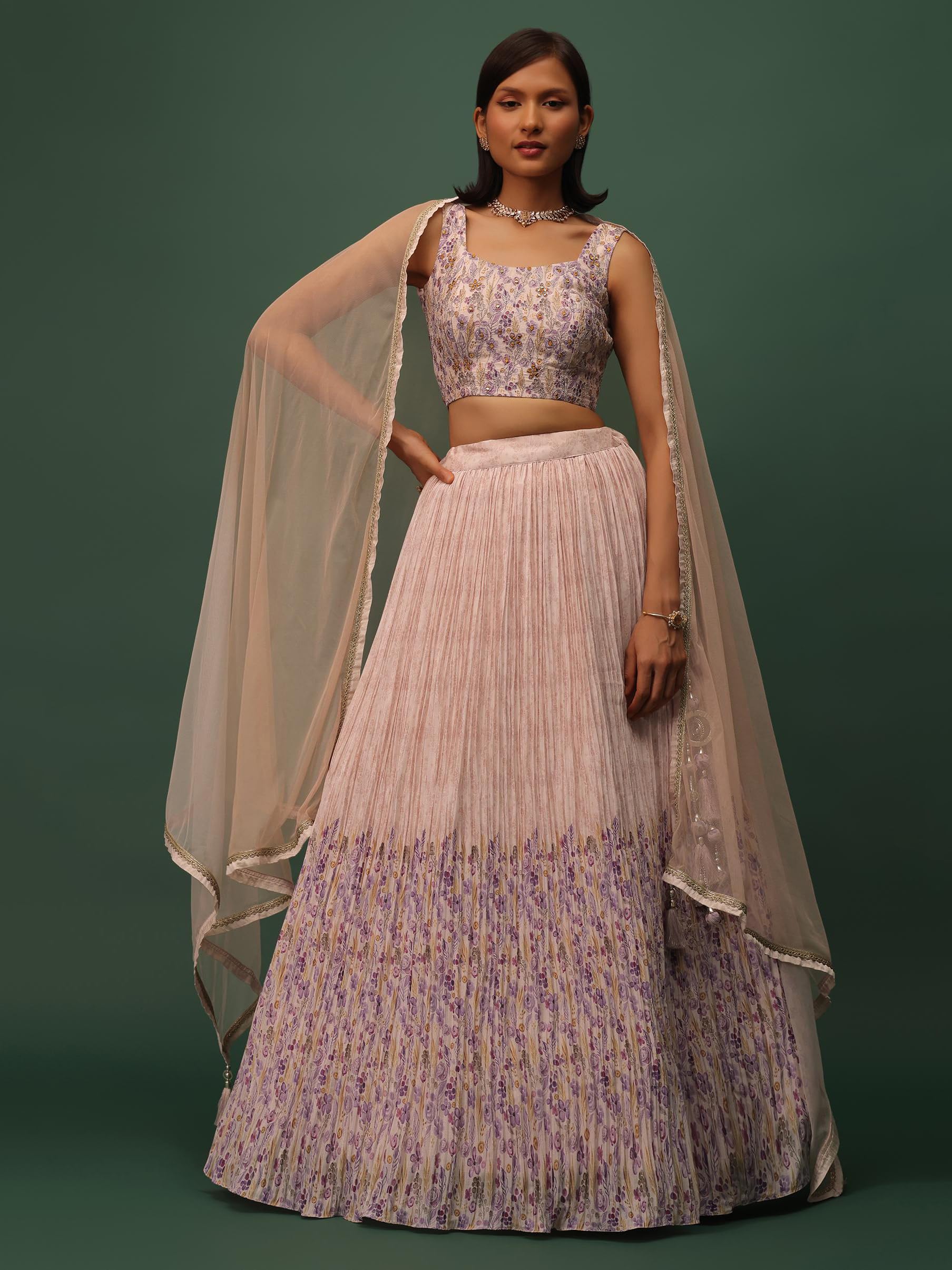 - Lehenga Work: Digital Print; Blouse Work: Mirror Hand Work,Print with Embroidered; Dupatta Work: Embroidery Border