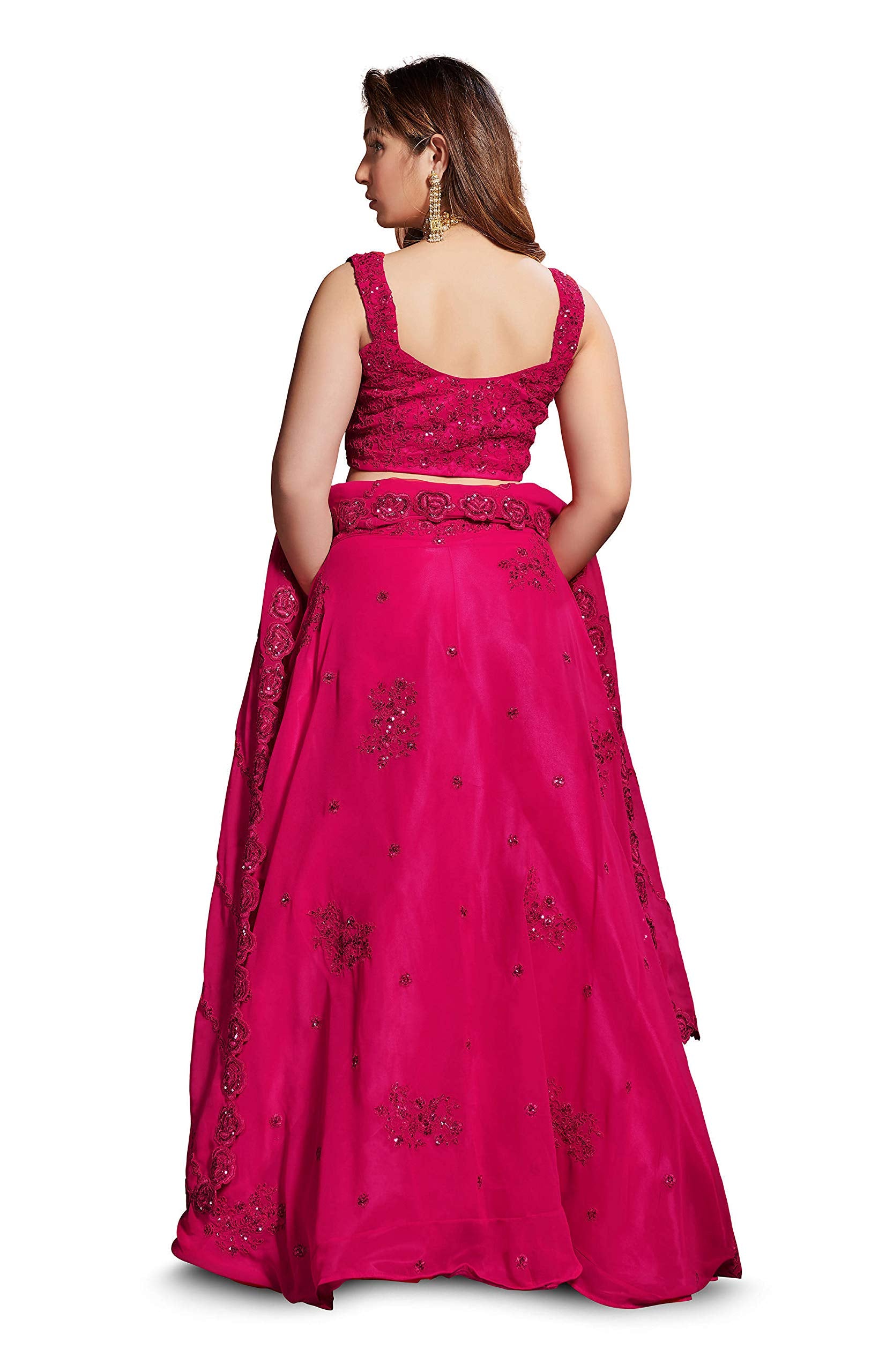 Zeel Clothing Women's Georgette Semi stitched Lehenga Choli (7060-Pink_Pink_Free Size)