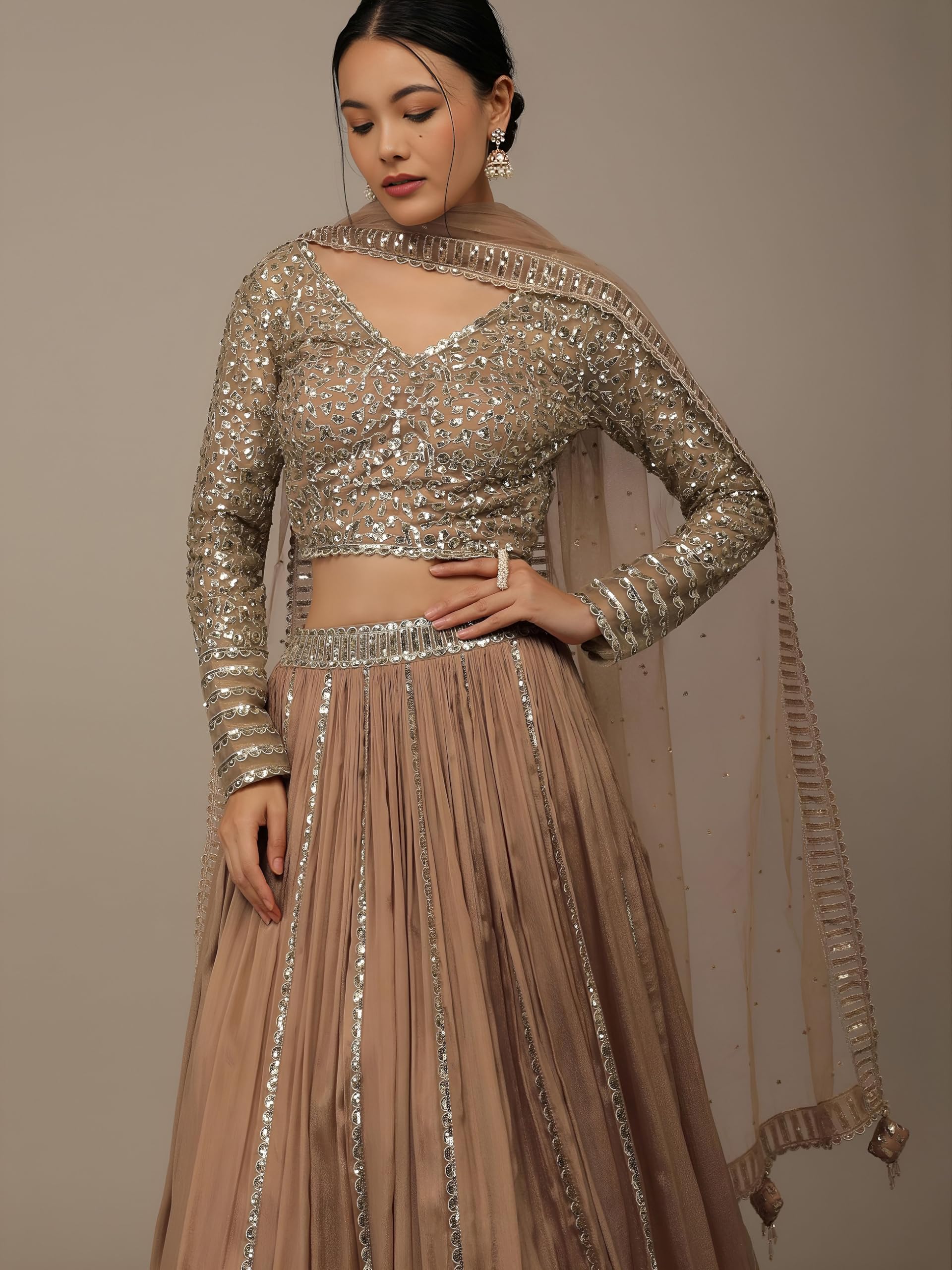 Zeel Clothing Women's Georgette Semi-stitched Sequins Zari Embroidered Lehenga Choli With Dupatta (7090-Beige--Lehenga-Choli-Latest; Free Size) (Beige)