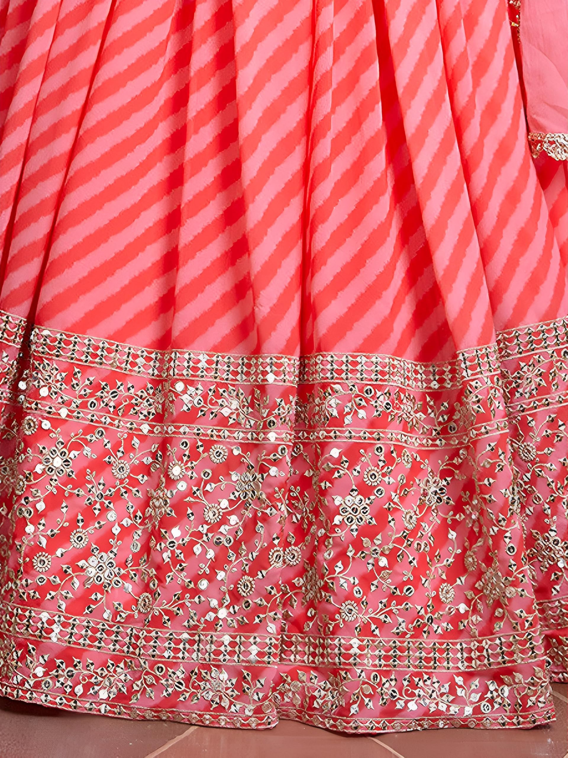 Zeel Clothing Women's Organza Laheriya Embroidered Semi-Stitched Lehenga Choli with Dupatta (107-Pink-Wedding-Bridal-Latest-Lehenga; Free Size)