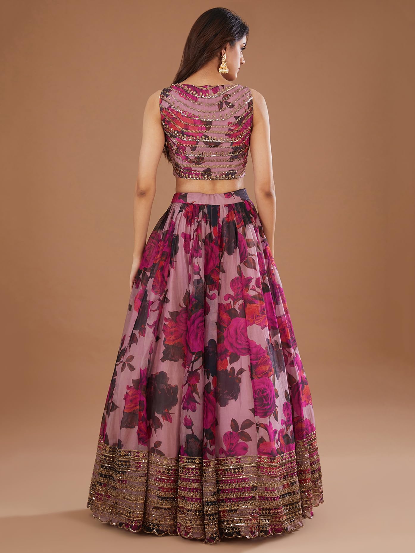 - Lehenga Work: Print and Sequins Embroidered; Blouse Work: Print and Sequins Embroidered; Dupatta Work: Print and Sequins Embroidered