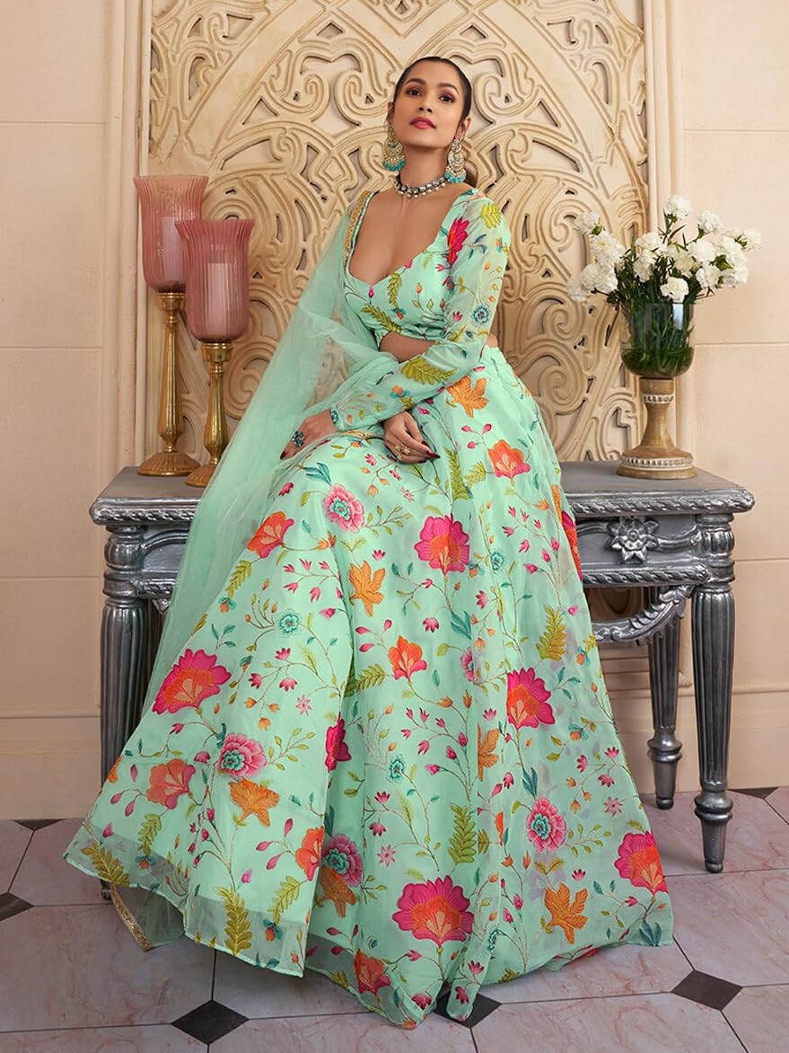 Zeel Clothing Women's Print And Dori Embroidered Organza Designer Readymade Lehenga Choli With Dupatta (7074-Pista-Womens-Lehenga-Choli-Latest; Free Size) (Pista)
