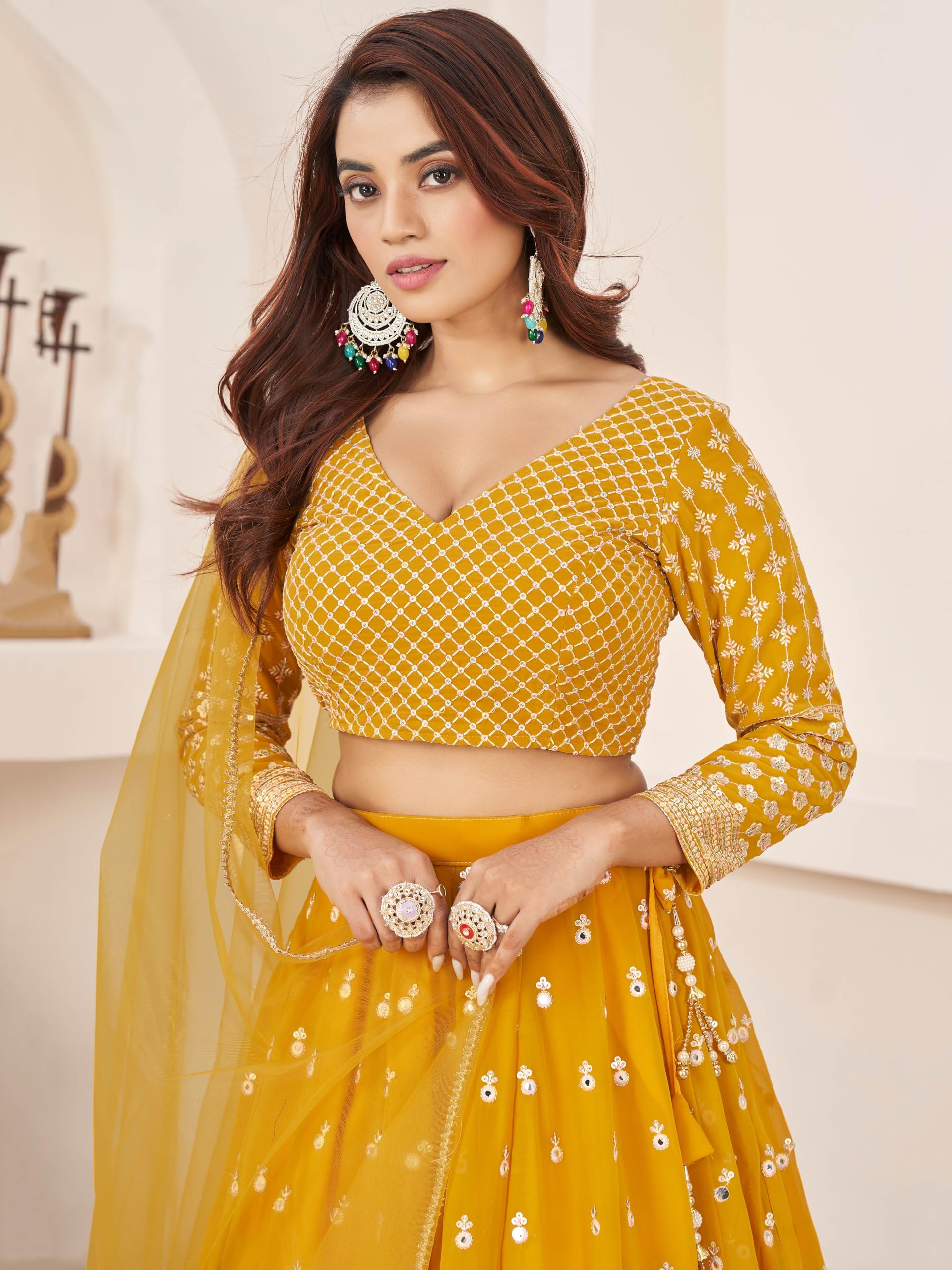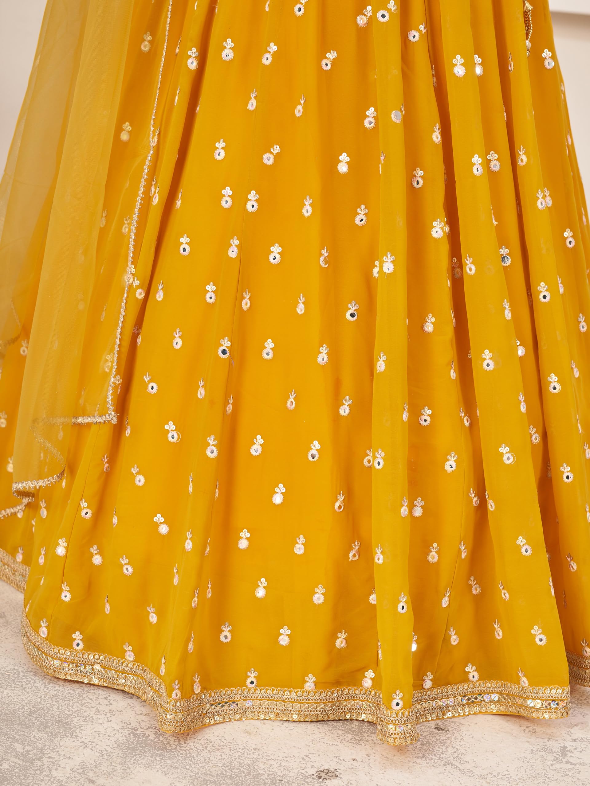 Zeel Clothing Women's Sequins Embroidered Georgette New Lehenga Choli with Dupatta (5071-Yellow-Wedding-Lehenga-Choli-Latest; Free Size)