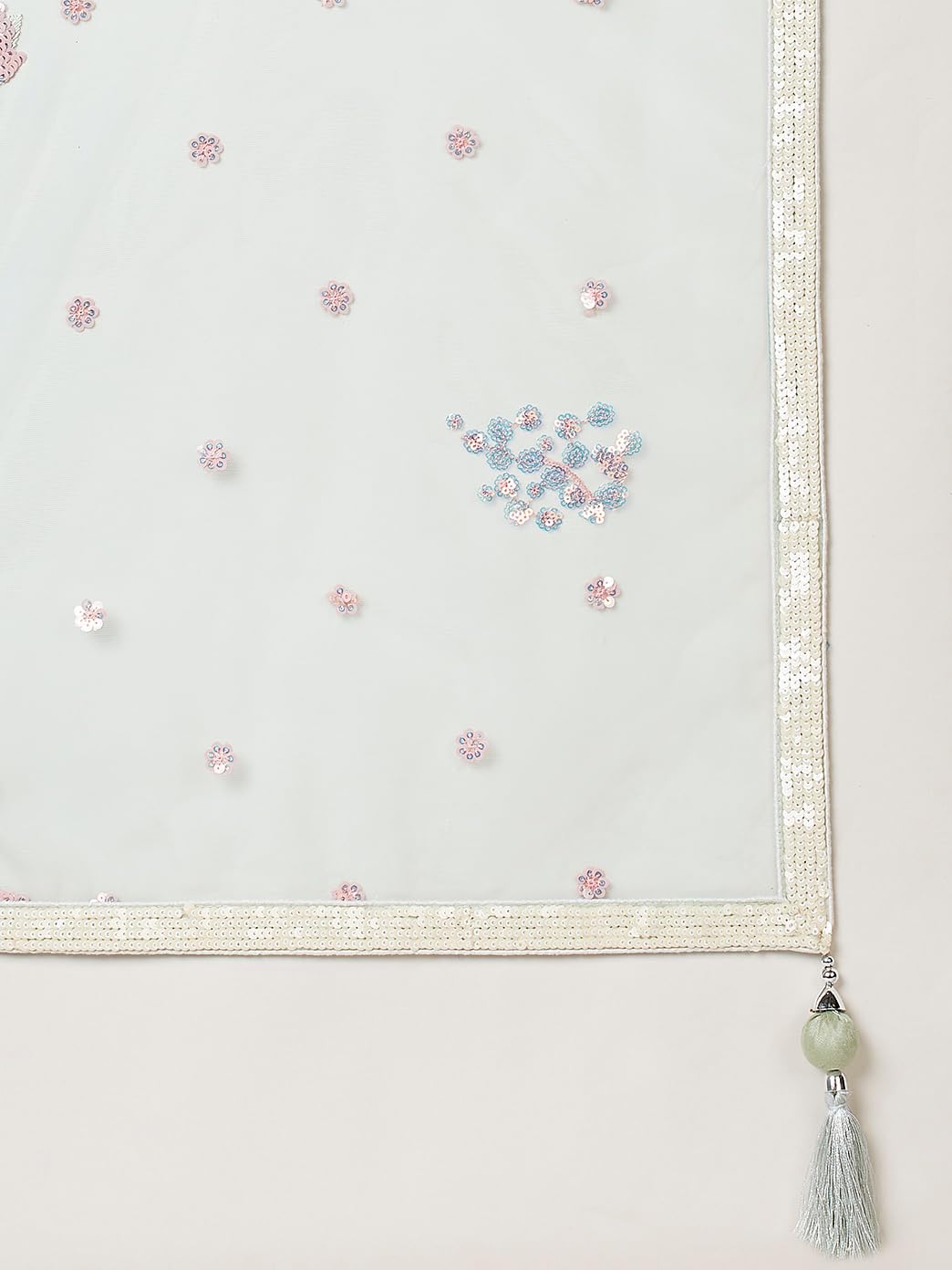 Zeel Clothing Women's Sequins Embroidered Soft Net Semi Stitched Lehenga Choli With Dupatta (6032-Pista-Wedding-Stylish-Lehenga-Choli-Latest; Free Size)