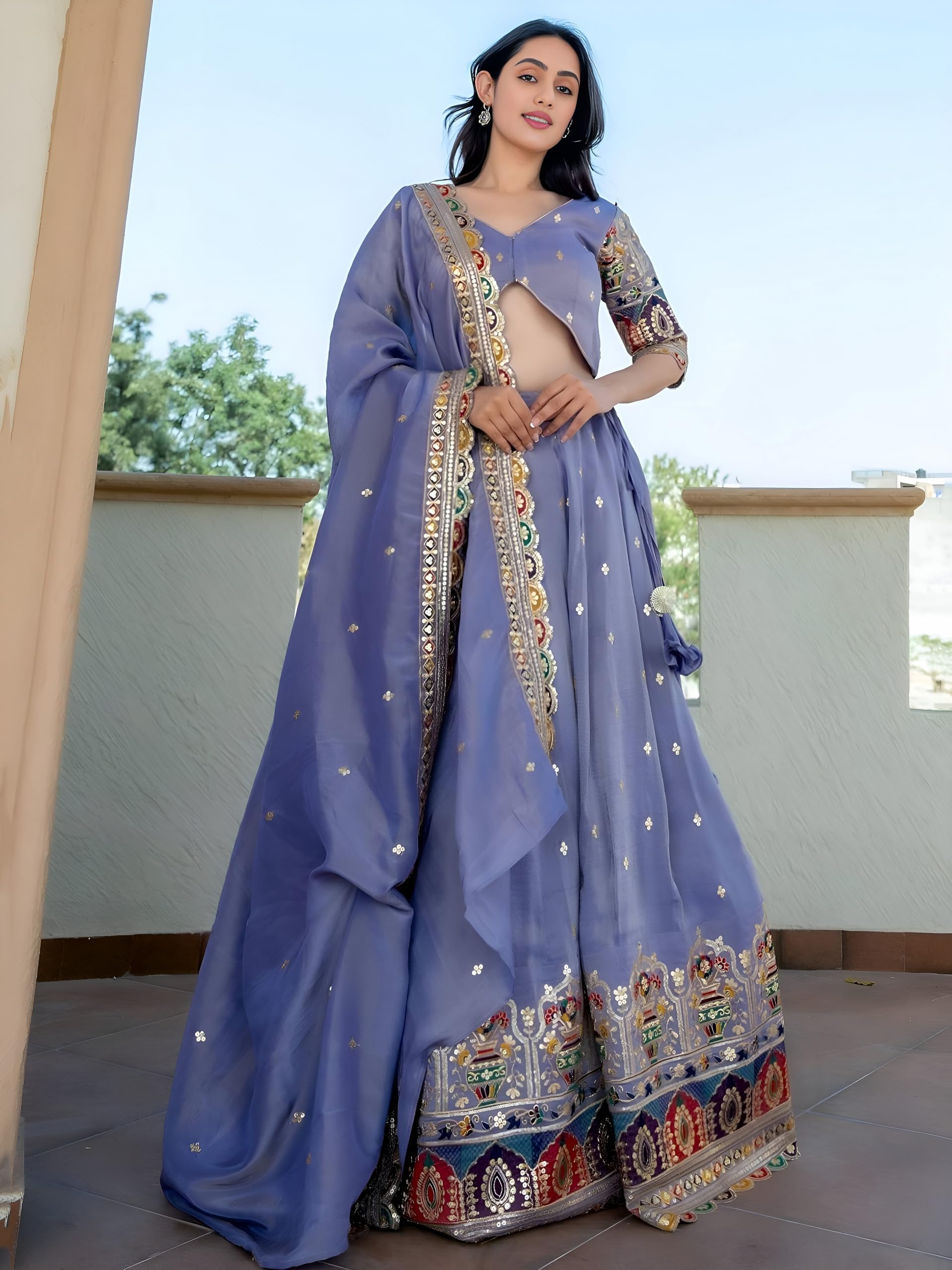 Zeel Clothing Women's Sequins Thread Embroidered Cosmos Silk Lehenga Choli With Dupatta (5128-Lavender-Women-Lehenga-Choli-Latest; Free size) (Lavender)
