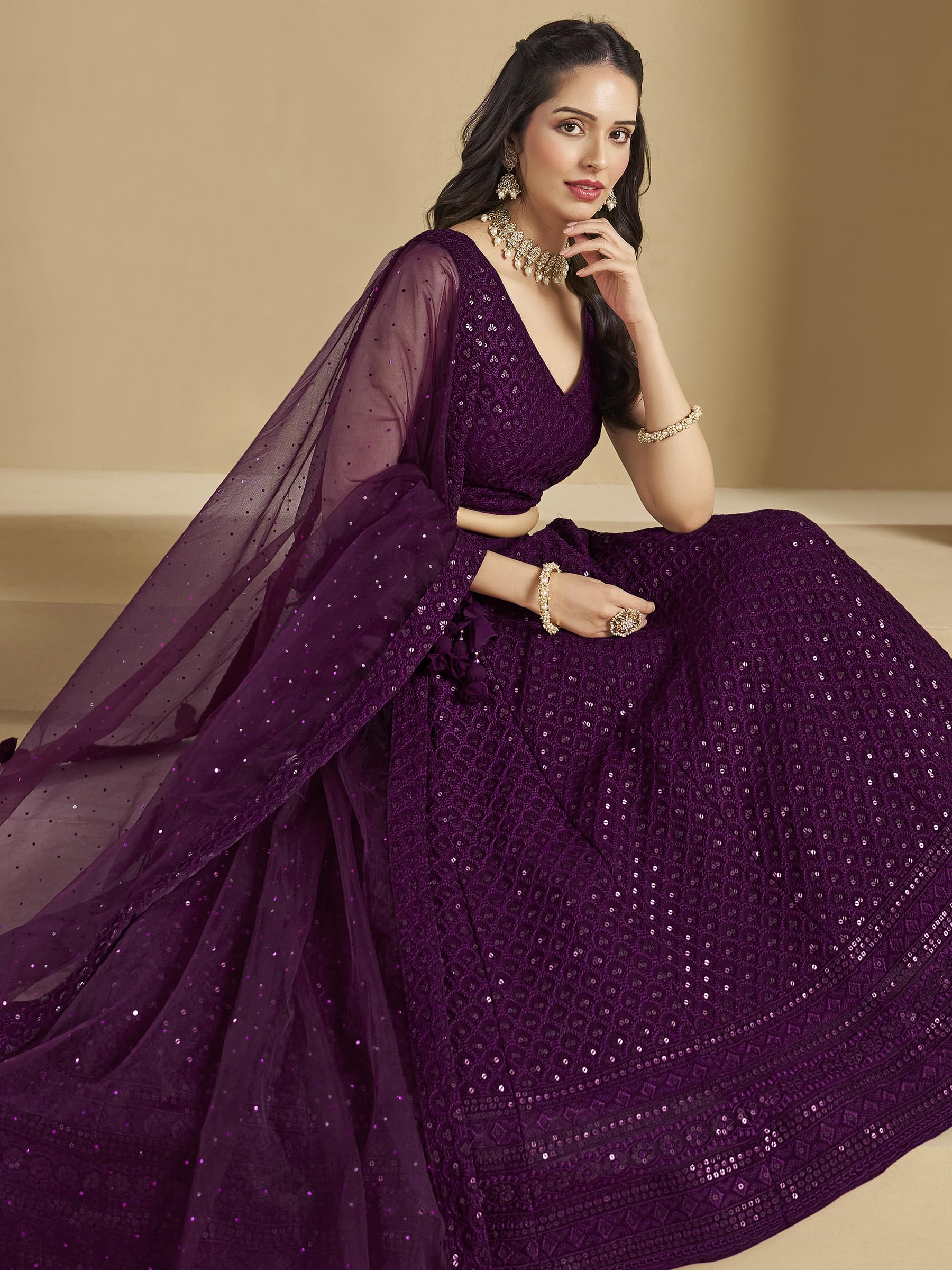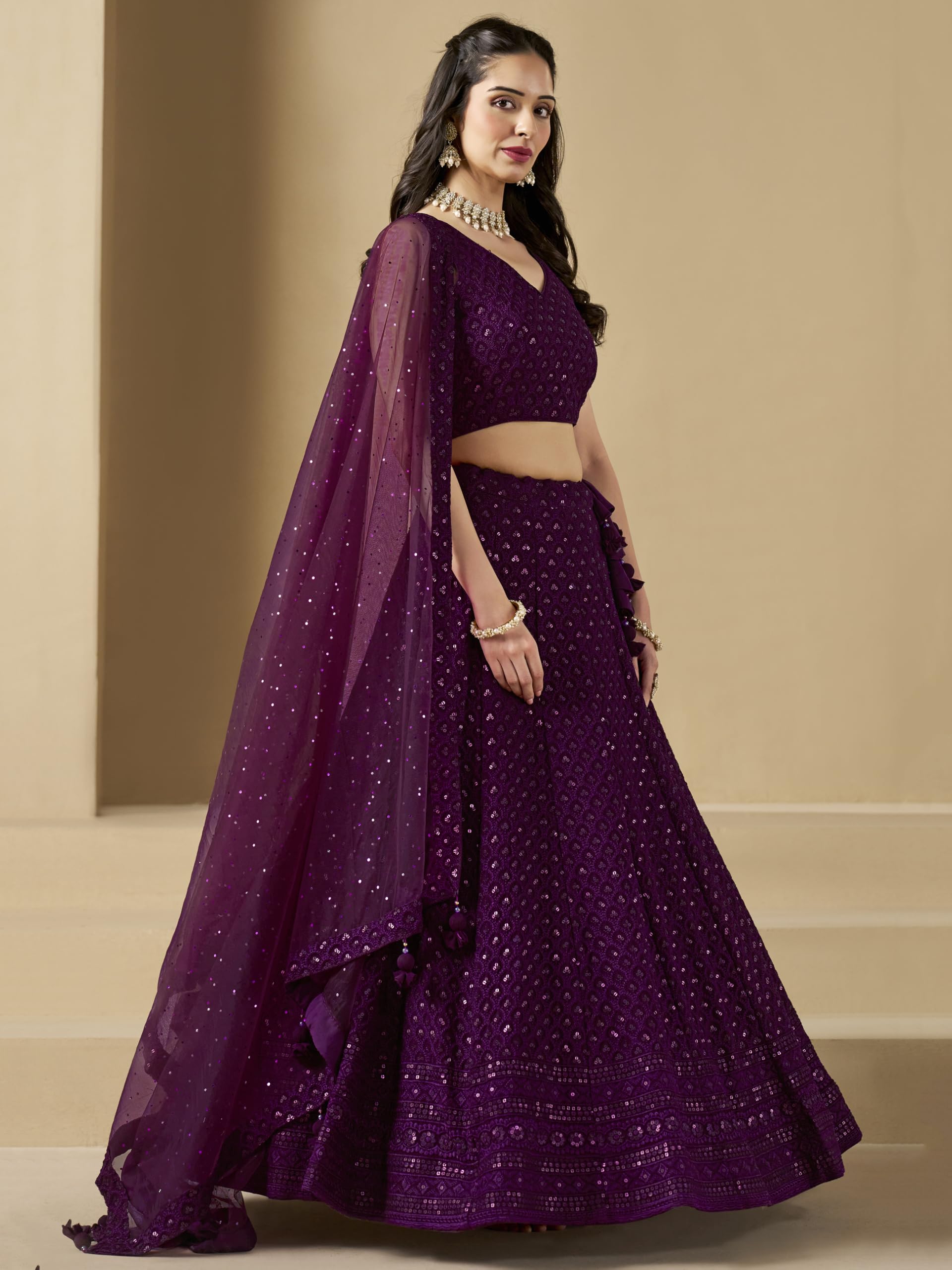 - Lehenga Work: Sequins Thread Embroidered; Blouse Work: Sequins Thread Embroidered; Dupatta Work: Sequins Thread Embroidered