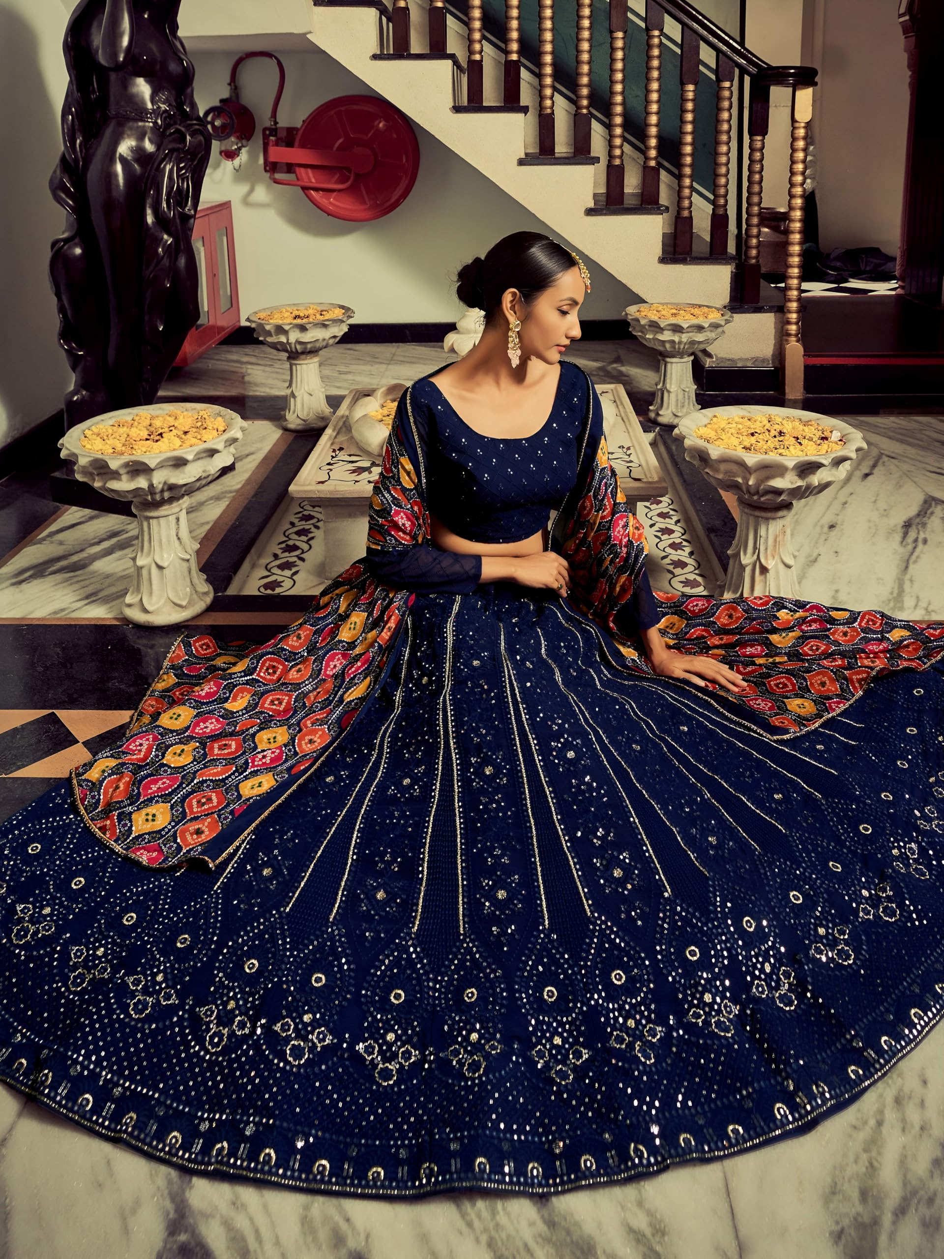 Zeel Clothing Women's Sequins Thread Embroidered Georgette Lehenga Choli With Dupatta (6005-Navy-Blue-Women-Lehenga-Choli-New; Free Size)(Navy-Blue)