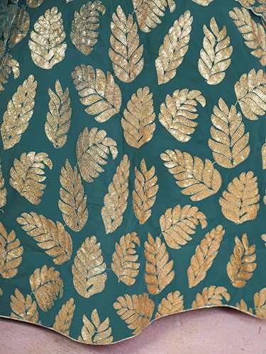 Zeel Clothing Women's Sequins Zari Embroidered Pure Georgette Semi Stitched Lehenga Choli With Dupatta (5120-Teal-Green-Wedding-Stylish-Lehenga-Choli-Latest; Free Size)