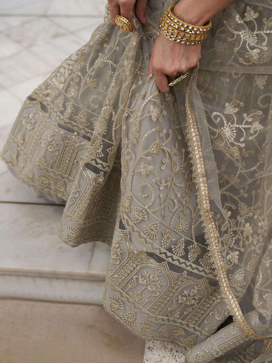 - Lehenga Fabric: Soft Net; Blouse Fabric: Soft Net; Dupatta: Soft Net; Inner: Santoon with Cancan(tulle) layered net