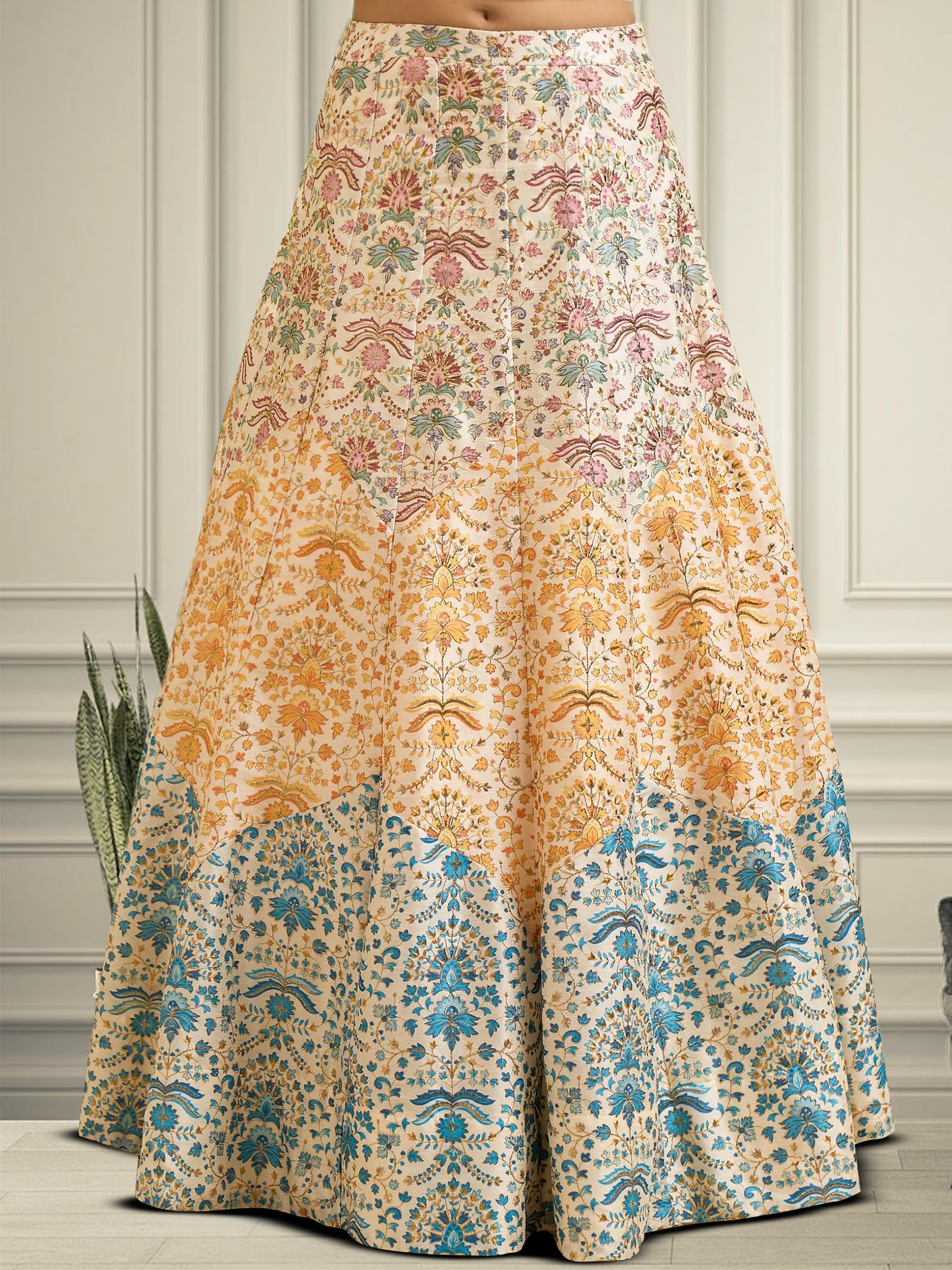 Zeel Clothing Women's Zari and Digital Print Work Art Silk Lehenga Choli with Dupatta (5073-Multi-Womens-Lehenga-Choli-New; Free Size)